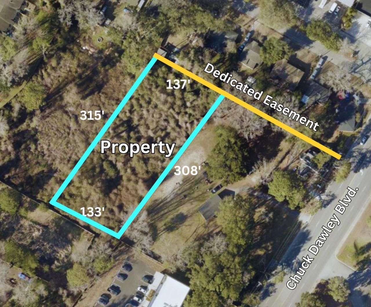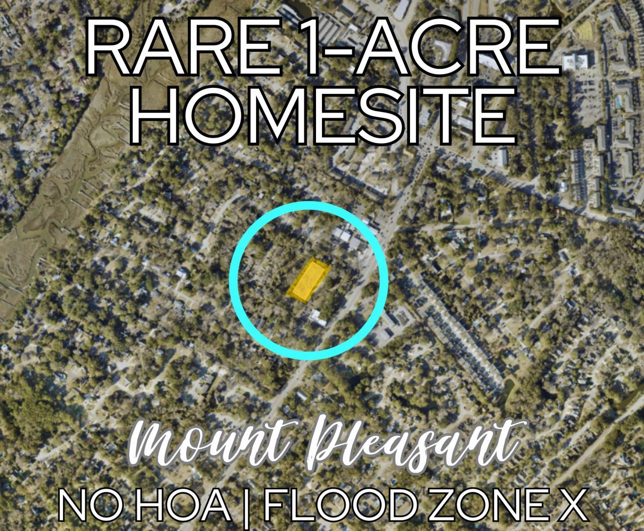 Rare opportunity to own a full one-acre homesite in the heart of Mount Pleasant's highly sought-after 29464 corridor. Zoned Charleston County R-4 (Urban Residential District) and located in Flood Zone X (flood insurance not required by lenders), this property offers flexibility, freedom, and convenience with no HOA restrictions.Tucked just off Chuck Dawley Boulevard, this private interior parcel provides a unique setting for a custom estate home while remaining minutes from Mount Pleasant's highly rated schools, the beaches of Sullivan's Island and Isle of Palms, Shem Creek, shopping, and historic downtown Charleston.Build your vision in one of the most desirable locations in the Lowcountry. Opportunities for acreage in this central Mount Pleasant location are increasingly rare. Bring your architect and create something exceptional. Buyer to verify zoning, access, utilities, and build feasibility. Property is being sold AS IS.