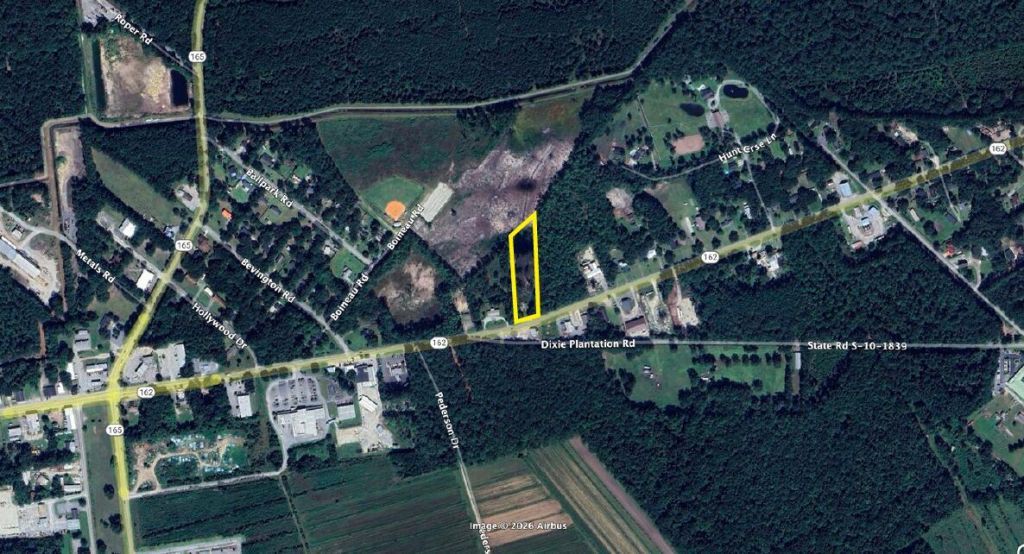 This property has approximately 2.5 acres zoned TC (Town Center) in the Town of Hollywood, SC. Ideally located just off Highway 162 in the Hollywood CBD, this commercial site is situated across from First Citizens Bank and near the corner of the Dixie Plantation intersection. Excellent visibility and accessibility with a wide range of commercial and mixed-use opportunities, making this a highly versatile development site. Additional land for sale.