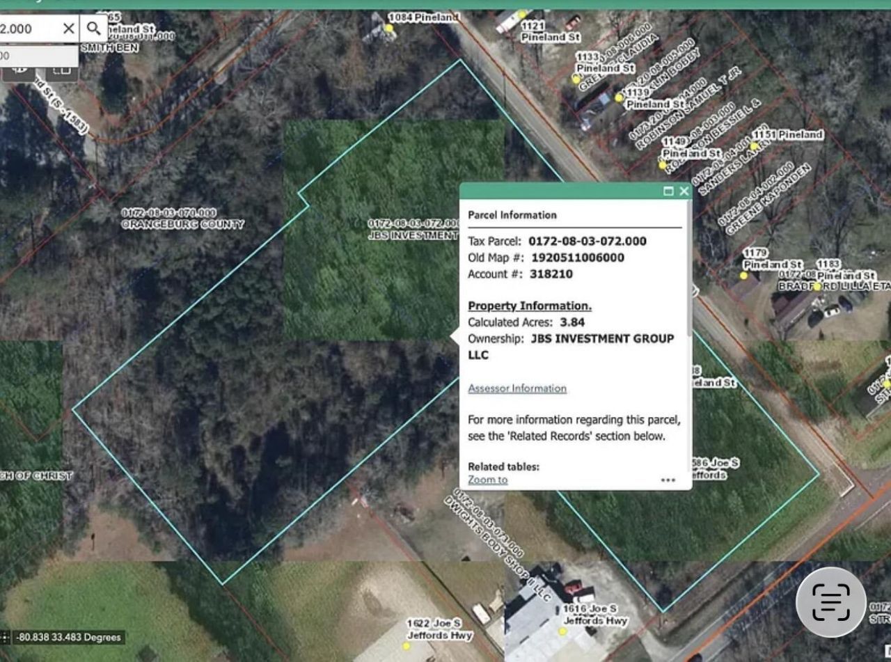 Great opportunity to own approximately 3.84 acres on Joe S. Jeffords Hwy in Orangeburg County! This property offers plenty of space to build your dream home or invest in land with long-term potential. Enjoy privacy and room to spread out while still having convenient access to nearby amenities. No HOA. Utilities are not currently in place. Buyer to verify all information.