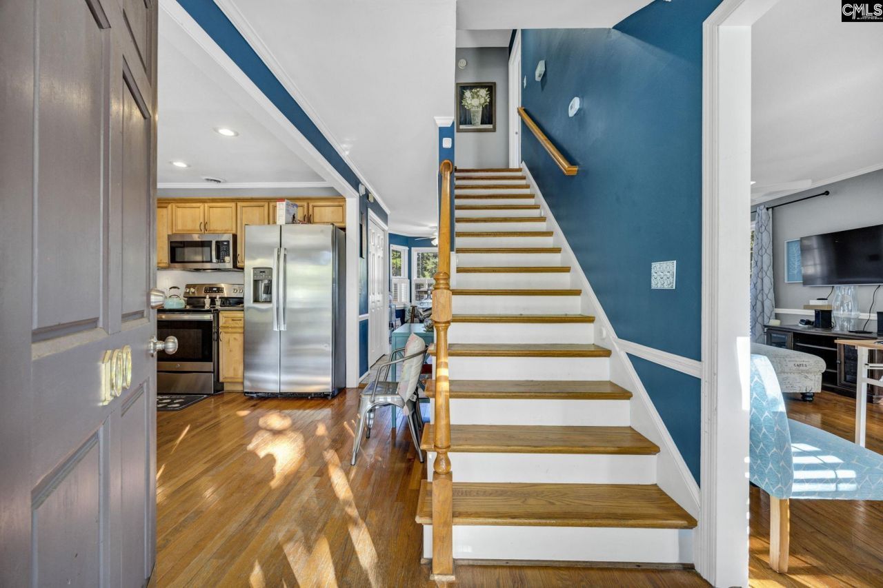 This charming 3 bedroom, 2.5 bathroom home zoned for River Bluff is nestled in Mallard Lakes! A wrap around front porch welcomes you into a cozy foyer. The eat-in kitchen features modern pendant lighting, recessed lights, hardwoods, a gas stove, a pantry, a bay window, and wrap-around counters. Hardwoods stretch through the spacious family room complete with a fan and gorgeous propane gas fireplace. The previous kitchen is now a huge laundry room with tiled counters and floors, shelving and cabinetry, and a work sink overlooking the backyard. There's even space for a small, in-home office to the side. The upstairs owner's suite features a sitting area with a bay window, laminate hardwoods, a fan, double vanities, tiled flooring, a walk-in closet with built-in shelving, and an additional gentleman's closet. Bedrooms 2 & 3 also have laminates and ceiling fans, and share the upstairs hall bath. Beautiful views surround this home on a corner lot cushioned between mature trees. Tankless water heater with instant hot water upgrade at kitchen sink. 2021 New HVAC! Located 1 minute from groceries, shopping, and dining, 20 minutes to downtown Columbia, and 10 to downtown Lexington. This is the perfect home and location for you! Welcome to your new home!! Disclaimer: CMLS has not reviewed and, therefore, does not endorse vendors who may appear in listings.