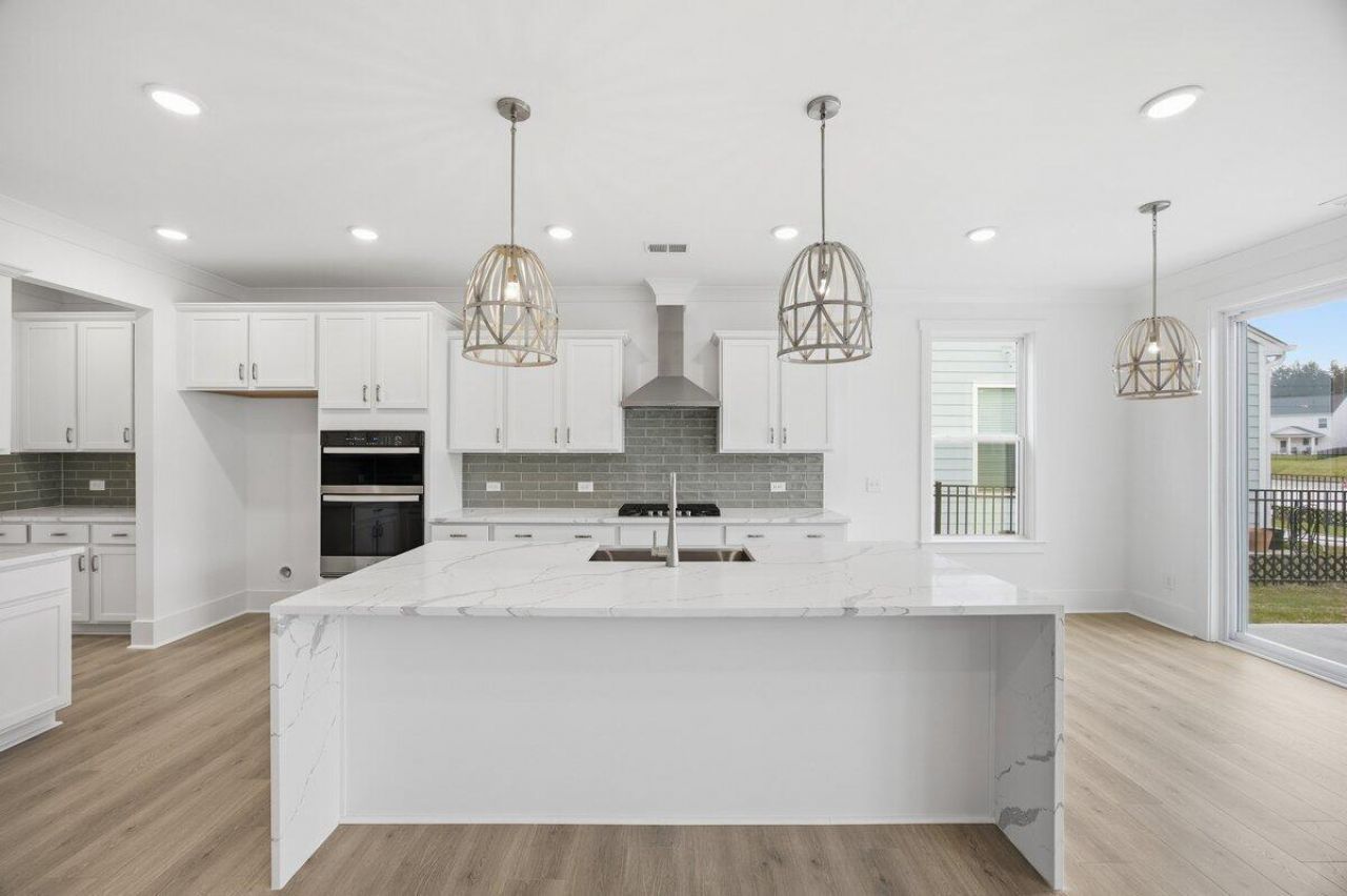 The Riley is a quick move-in semi-custom home offering over 3,100 sq ft with 5 bedrooms and 4 full bathrooms. The main level features an open Dining Room with a Butler's Pantry leading to a gourmet Kitchen with eat-in nook, porcelain farmhouse sink, quartz countertops, upgraded cabinetry, and tile backsplash. The Kitchen opens to a spacious Great Room with fireplace. A main-level guest bedroom and full bath add flexibility. Upstairs includes a versatile Bonus Room, convenient Laundry Room, and an oversized Primary Suite with private ensuite and expansive walk-in closet. Three additional bedrooms and two full baths complete this well-designed layout.