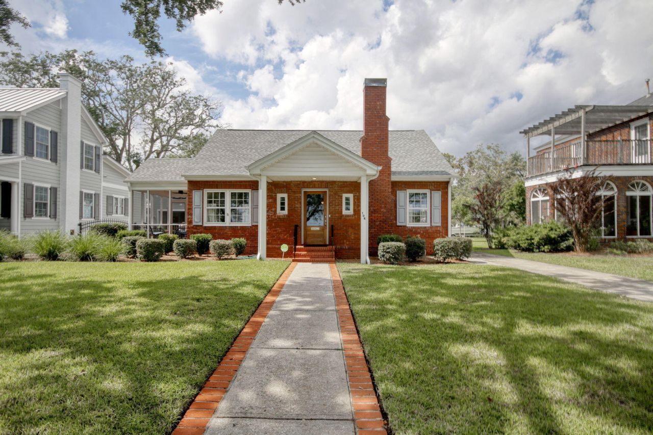 What gorgeous sunrises you will enjoy! Charming Downtown Georgetown is the place to be, especially across from the more than 13-acre East Bay Park and with picturesque Winyah Bay beyond. 104 East Bay Street, a well-maintained and consistently upgraded four-bedroom brick-faced cape, offers both charm and comfort, with a welcoming, classic layout. Entering in the front, you will first notice the abundance of light from this home's many windows. You will see the living room to your right and the sunroom/den to your left. A door on the far side of the sunroom opens to the delightful screened-in porch. From the living room you first enter the dining room with original built-in China cabinet, and then the updated kitchen with breakfast area.