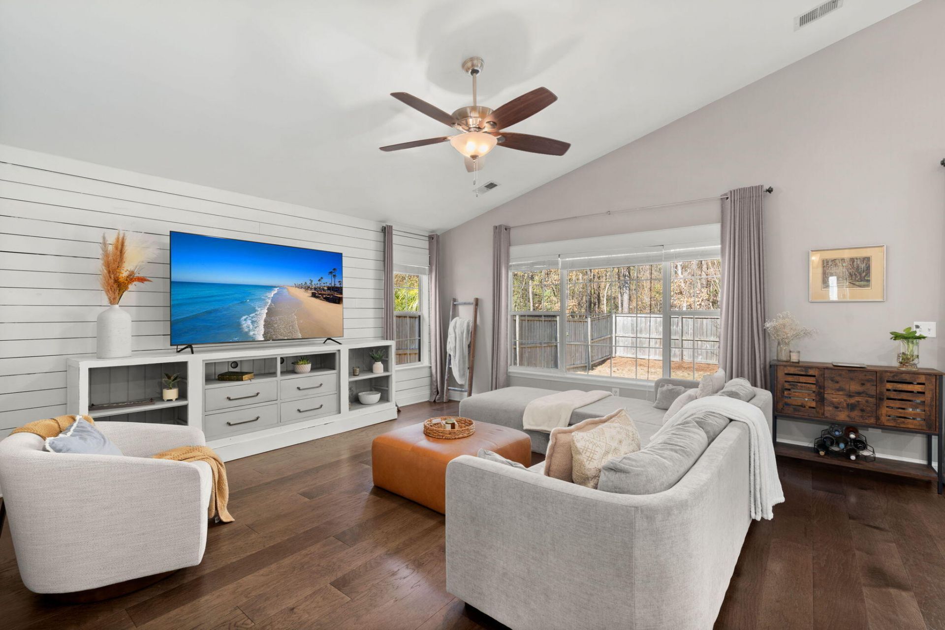 Welcome to 1108 Old Course Lane, a completely turn-key, beautifully remodeled single-story home nestled within the highly sought-after Charleston National Golf Club community in Mount Pleasant. Ideally located in the heart of North Mount Pleasant, this home offers exceptional convenience just minutes from Costco, Carolina Park Elementary School, Wando High School, the Wando Mount Pleasant Library, and even a 5-minute walk to Home Team BBQ.Showcasing attractive stucco veneer and a thoughtfully designed one-level floor plan, this home blends comfort, style, and functionality with an abundance of natural light throughout. From the moment you step inside, you'll appreciate the peaceful feel of both the home and the lot, offering a quiet setting that makes everyday living feel relaxed and inviting.At the front of the home, two well-appointed guest bedrooms each feature custom-built closet systems for added storage and organization. Positioned between them is a full bathroom, creating a practical and private layout for family or guests.The remodeled kitchen serves as the heart of the home, featuring granite countertops, a beautiful backsplash, soaring vaulted ceilings, and a huge island that provides ample space for cooking, gathering, and entertaining. The kitchen flows seamlessly into the main living area, creating an open and airy layout that is ideal for both everyday living and hosting guests.Privately situated, the primary suite serves as a true retreat, offering a spacious walk-in closet with floor-to-ceiling built-ins and an updated en suite bath complete with a custom-built vanity, dual sinks, and a newly renovated tiled walk-in shower.Additional thoughtful upgrades include a laundry room with built-in cabinetry, a utility sink, and a butcher block countertop for extra workspace and convenience. Step outside to enjoy the fully fenced backyard with privacy fencing, all backing up to protected wooded space that enhances the home's quiet, private, and peaceful atmosphere.Residents of Charleston National enjoy access to outstanding community amenities, including a championship golf course, a competitive swimming pool, separate leisure pool, playground, tennis courts, and newly redone pickleball courts, making this one of Mount Pleasant's most desirable communities for both recreation and lifestyle.Offering the perfect blend of Lowcountry charm, quality updates, natural light, and an unbeatable location, 1108 Old Course Lane is a rare opportunity to own a move-in-ready home in one of North Mount Pleasant's most beloved communities