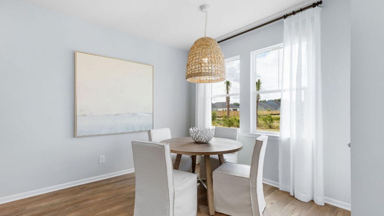The Fletcher is an open 2 story where you'll find a study that makes a great home office or reading room. The home has a formal dining room in addition to the breakfast nook. The gourmet kitchen features a large center island, double ovens, gas cooktop with stainless hood all great for cooking large dinners and entertaining. There is a cozy guest suite on the first floor with large walk-in closet, ideal for those who can't do stairs. The large owners retreat with double doors is situated upstairs where the bath has a 5' tiled shower with rain head, elevated vanity with dual sinks and private water closet. There are 3 spacious secondary bedrooms, one that leads to a 2nd story balcony, 1 full guest bath and laundry also located on the second floor.Carnes Crossroads is located in the city of Goose Creek, conveniently in Summerville, SC. You can enjoy the convenience of a growing selection of shops, restaurants and entertainment, as well as a full-service hospital and 2 onsite schools. For recreation and outdoor adventures, Carnes Crossroads features an extensive trail system dotted with parks and large lakes to offer fishing, kayaking and paddle boarding. Our new amenity is now open so residents can enjoy fresh produce from the Farm Store, work-out at the Wellness Center, grab coffee or a sandwich at the Lake House, play pickleball, tennis and basketball and slide down at the resort style pool.
