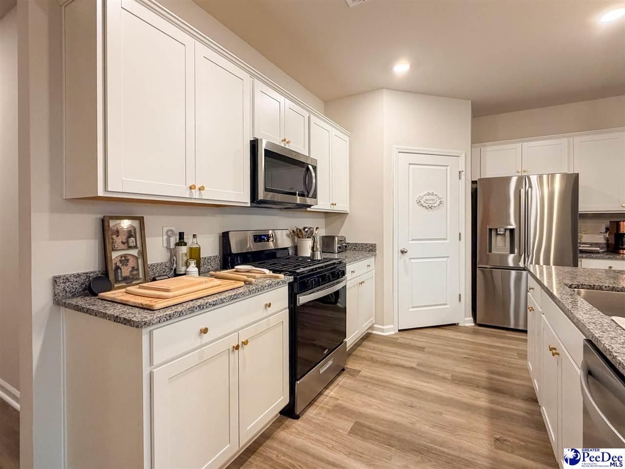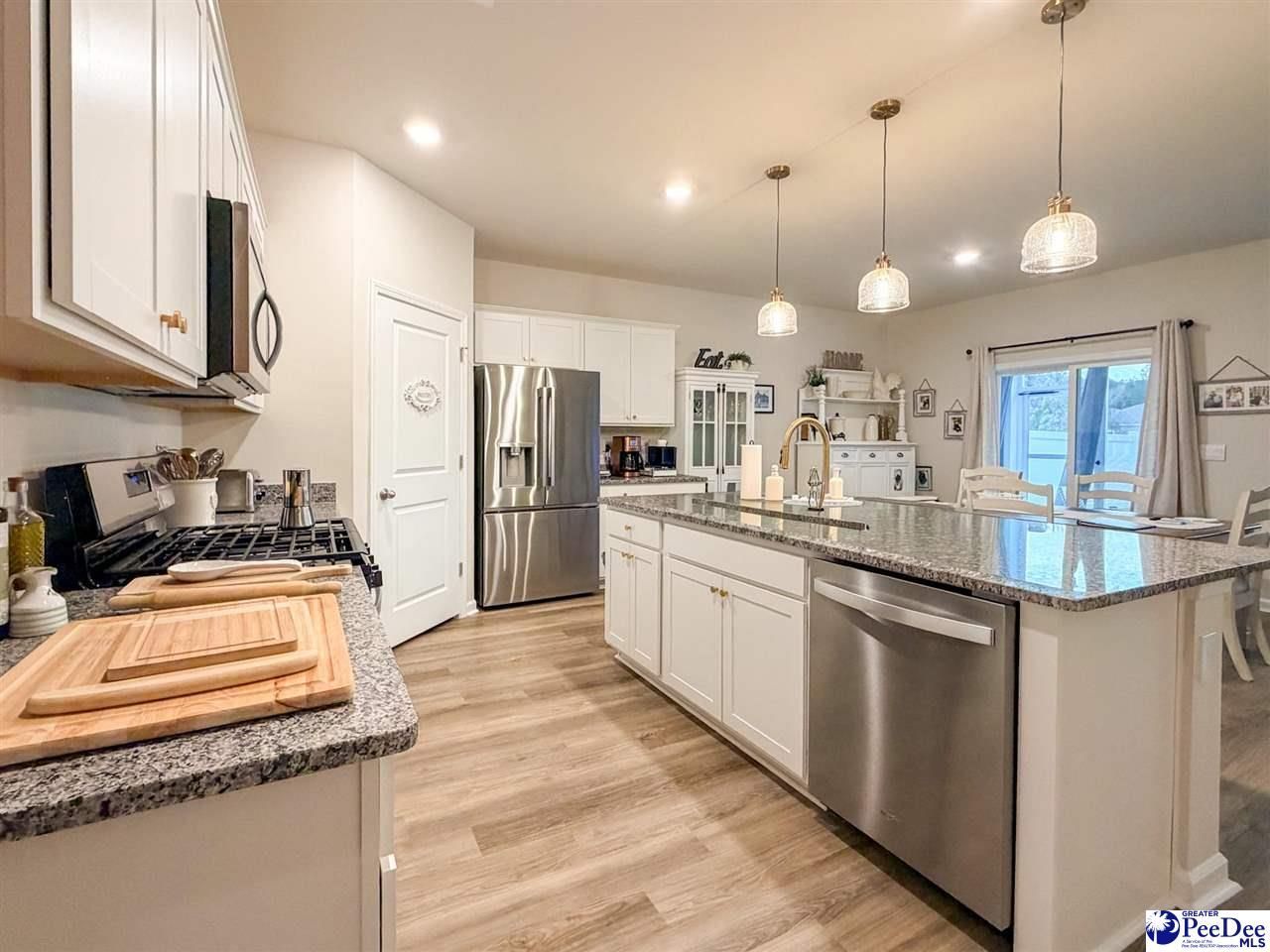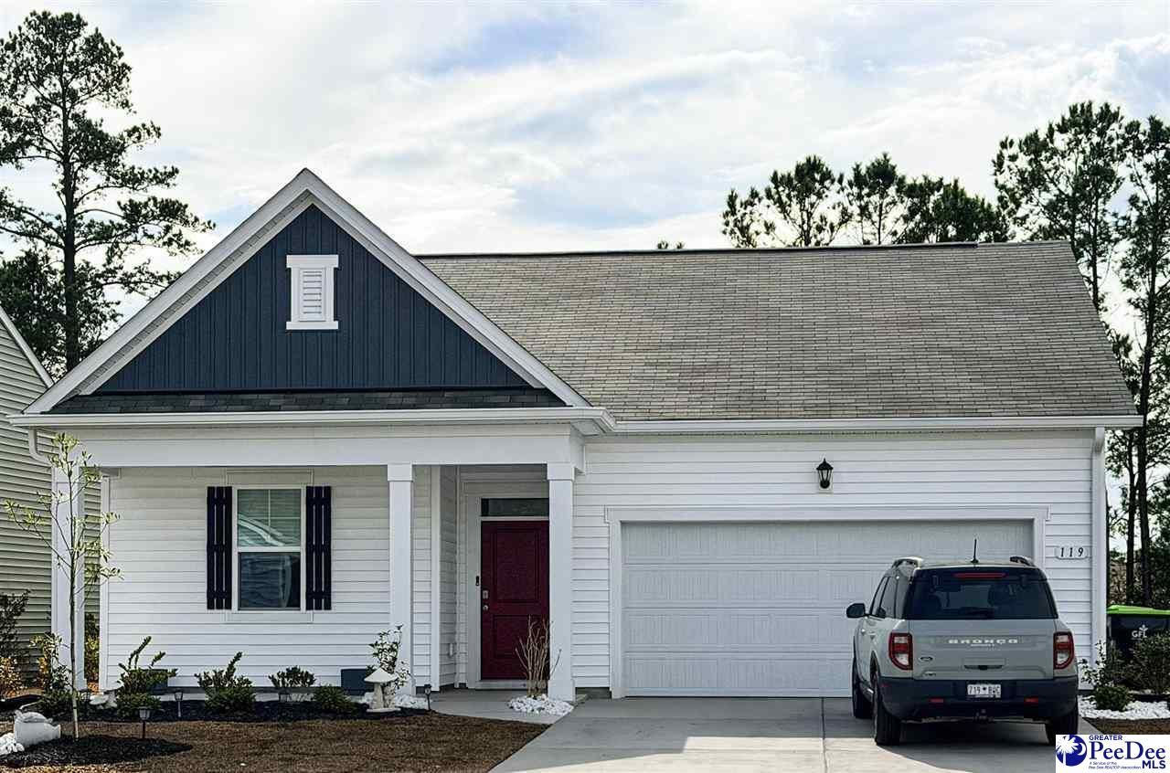 Welcome to 119 Marauder Drive in The Vistas at Sun Colony, a beautifully upgraded 2024-built home offering 4 bedrooms, 2 bathrooms, and 1,842 heated square feet of thoughtfully designed living space. Located in a quiet golf course community along Highway 9 in Longs, this home provides peaceful residential living just 30 minutes from North Myrtle Beach, Myrtle Beach, and the entire Grand Strand via Highway 31. This open-concept home features 9-foot ceilings and luxury vinyl flooring throughout, enhanced with padded underlayment for a softer, more comfortable feel. The kitchen is equipped with a natural gas range and oven, upgraded pendant lighting, upgraded faucet and cabinet hardware, and a spacious pantry. A separate laundry room adds everyday convenience. Energy-efficient and smart-home features include a programmable smart thermostat, Alexa-controlled lighting, a tankless natural gas hot water heater, and added attic insulation. Exterior improvements include an extended patio, screened-in porch, full-yard irrigation system, gutters with French drains, decorative river rock drainage beds, and a transferable termite bond. The property backs directly to the golf course, offering serene views and a partially fenced yard ideal for relaxing or entertaining. The community atmosphere includes a mix of retirees, families, professionals, and golf enthusiasts seeking affordable living outside the higher-priced coastal zones. Appliances will remain with the home, including the refrigerator, stove, microwave, washer, and dryer. Furnishings are not included in the purchase price but are available for sale separately or as a package. Served by the North Myrtle Beach School System and conveniently located on Highway 9 with quick access to Highway 31, this home offers quiet retreat living with easy access to beaches, dining, entertainment, and golf. A rare opportunity to own a nearly new, move-in ready home in a desirable golf course community.