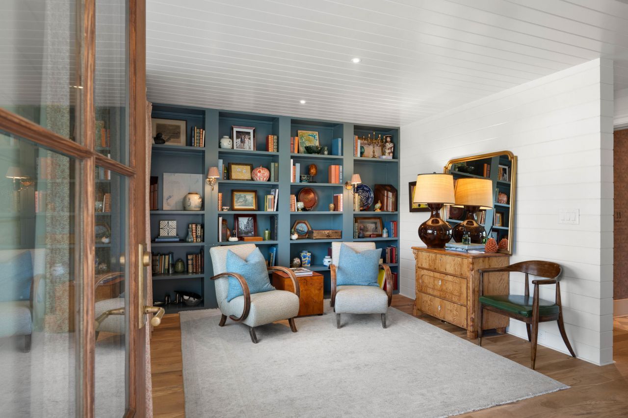 Welcome to 12 Ellen Avenue, located in the heart of South Mount Pleasant. This turnkey, beautifully renovated and redesigned home blends traditional charm with thoughtful, high-end updates. In 2023, this home went through a total renovation to the studs and was completely redesigned with an addition to the property. Notable interior finishes include custom cabinetry throughout, custom Urban Electric lighting, unlacquered brass fixtures, Rohl and Waterworks plumbing, white oak flooring with custom stain, and custom window treatments and drapery throughout. The inviting entry to the home has an abundance of natural light and leads you into a beautiful sitting area or library nook, featuring custom built-in shelving with exquisite details. The kitchen includes honed marble countertops, vaulted ceilings, a gas range with custom hood, paneled Thermador refrigerator and dishwasher, custom kitchen island, and built-in banquette seating with storage in the dining area. A spacious walk-in butler's pantry with a walnut countertop and coffee bar features a built-in wine fridge and sink. The vaulted living room centers around a wood-burning fireplace with beautiful brick surround and new windows flanking each side. Located off the living room, the first-floor primary suite features a walk-in closet, seagrass Schumacher wallpaper and a spa-like primary bathroom with honed marble countertops, dual vanities, and a walk-in shower. Down the front hallway there are two guest bedrooms with seagrass mural wallpaper by House of Harris and one with pine-stained ceilings. A full bathroom and a half bath are also located near both bedrooms off the hallway. The laundry room with marble countertops and custom cabinetry is located off the primary suite near the staircase and has a built-in drop zone with bench seating and offers plentiful storage. Upstairs offers a newly added vaulted bedroom with stained pine walls and ceilings. Another guest room or flex room upstairs offers custom built-in shelving and sconce lighting. A full walk-in shower bathroom with wallpaper detail is also located upstairs between the two bedrooms. Outdoor living includes a stunning pool with paver details for lounge chairs and dining, a wood storage shed with a cedar shake roof and a spacious back and side yard just beyond the pool area that could potentially accommodate a garage/pool house. The owners have plans in hand for this structure and will convey to buyer. Additional updates include new HVAC and ductwork, a whole house water filter system, custom trim, new windows, doors, roof and gas lanterns. Situated just steps from Shem Creek, Old Village, Pitt Street bridge, neighborhood parks, local shops and dining, and minutes to Sullivan's Island and downtown Charleston - this is Lowcountry living at its finest.