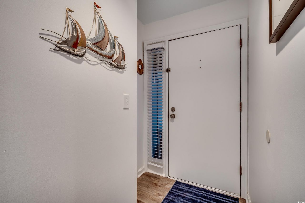 Experience coastal living in this end-unit oceanfront condo at 203 SandDollar. Located just north of the Garden City Pier, this fully furnished 2-bedroom, 2-bath retreat offers direct beach access, breathtaking views, and a perfect mix of comfort and convenience. Inside, the bright open floor plan features luxury vinyl plank flooring throughout. The kitchen has been refreshed with painted white cabinets, solid-surface countertops, a breakfast bar, and updated appliancesideal for casual dining or entertaining. The primary suite includes a ceiling fan and ensuite bath with a tub/shower combo, while the guest bedroom has easy access to a refreshed hall bath. Step out onto your private oceanfront balcony and take in stunning sunrise views of the pier and shoreline. Additional features include a foyer entry, in-unit washer/dryer, and private ground-level storage for all your beach gear. Community amenities include oceanfront pool access through the Kingfisher Inn, plus a spacious sundeck with picnic tables, loungers, and an outdoor shower for convenient beach cleanup. HOA dues cover water, sewer, trash, cable, internet, pest control, landscaping, common area maintenance, and pool service. Each unit has one designated parking space, plus seven shared spaces. The nine-unit complex is both golf cart and motorcycle friendly. Short- and long-term rentals are allowed, providing strong rental potential. This prime location is just steps from the Garden City Piers fishing, dining, arcade, and live music, and minutes to Murrells Inlets MarshWalk and Myrtle Beach attractions, golf, shopping, and the airport. Whether youre searching for a vacation home, rental investment, or full-time oceanfront escape, 203 SandDollar delivers. Explore the 3D Virtual Tour here: www.bit.ly/203SandDollar.