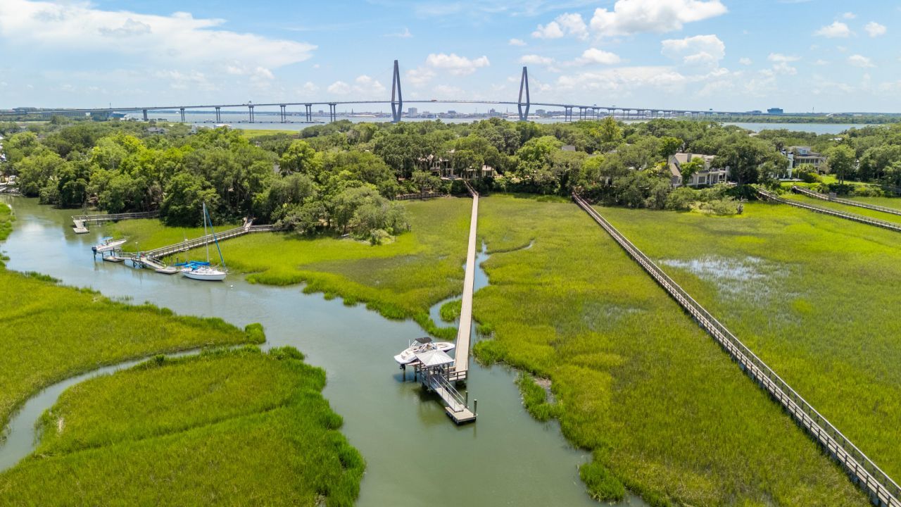 This exquisite Spanish Mediterranean deepwater estate in River Reach at Remleys Point is located within one of Mount Pleasant's most exclusive and private waterfront enclaves. Perfectly positioned on Molasses Creek with direct access to the Wando River, the home offers sweeping marsh views, refined finishes, and a seamless indoor-outdoor lifestyle, all just minutes from downtown Charleston with the convenience of a single right-on-red turn to the bridge.Perched on a high bluff, the property includes a private dock on fully navigable Molasses Creek with roughly five feet of depth at low tide, a covered pier head, and a floating dock with a 5,000-pound boat lift. Located in an X Flood Zone and approximately 16 feet above sea level, the home is just around the bend from the Wando River. You can reach Charleston Harbor in minutes.Inside, the gracious foyer opens to a spacious living room with a fireplace and a direct connection to the chef's kitchen, which features a 48-inch Thermador Pro Grand Steam Range, built-in refrigerator, and an Aquasauna double water filtration system. The dining space is accented by an authentic Italian Sputnik chandelier and flows seamlessly onto the pool terrace, where sweeping marsh views create the feeling of alfresco dining year-round. The primary suite serves as a serene retreat with a spa-like bath, generous closets, and porch access, while two additional bedrooms, each with en suite baths, are located on opposite wings of the home for enhanced privacy. A hidden sound proof theatre with secret entry offers a projector screen, surround sound, and oversized lounge seating. Designed for entertaining and relaxation, the home features whole-house audio, a heated saltwater pool with LED lighting and waterfall spa, an outdoor sound system, gas lanterns, and an artificial turf lawn that stays green year-round. A lush vegetable and herb garden with a mature fig tree adds charm, complemented by a pool shower and manicured grounds. Multiple porches provide abundant outdoor living space, with a dumbwaiter serving the top floor for added convenience. Hurricane-rated windows throughout the home provide peace of mind, while professional lighting illuminates the striking architecture and centuries-old oaks each evening.A distinctive highlight is the pool house, which functions as an Auralex-designed, professional-grade music studio with double studded walls and floating floor, complete with a vocal booth, custom sound conditioning panels, wet bar, and even a mini hair salon.This thoughtfully designed deepwater retreat combines sophisticated design, luxury amenities, and the ultimate Lowcountry lifestyle where everyday feels like a getaway.