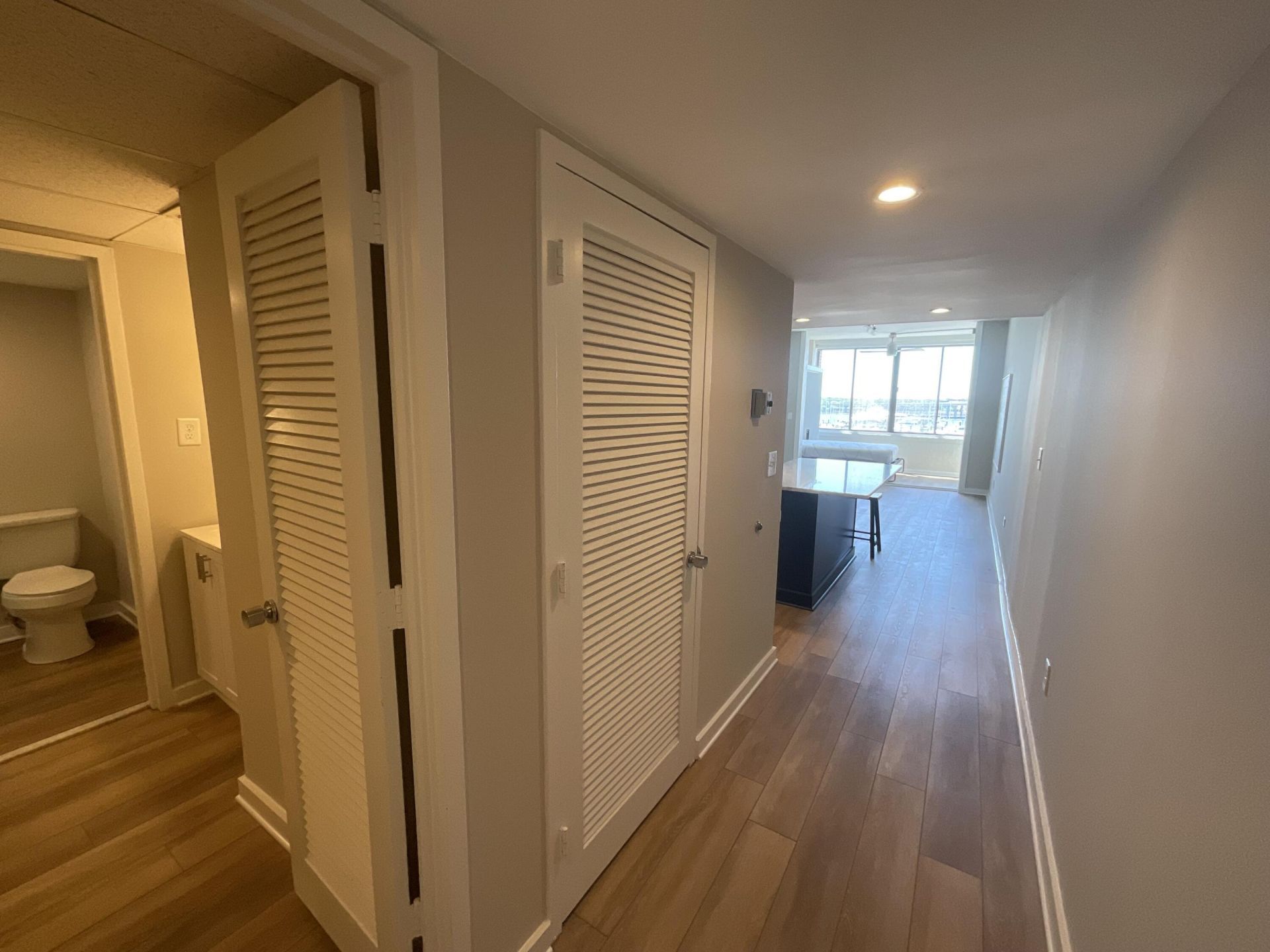 Enjoy sweeping views of downtown Charleston from this bright and thoughtfully designed studio condo, located just across the street from the City Marina and within walking distance to MUSC, WestEdge, and everything the peninsula has to offer. This unfurnished studio features a newly renovated kitchen, ample closet space, and a convenient in-unit washer and dryer. A built-in Murphy bed maximizes living space while maintaining functionality. Large windows bring in natural light and highlight the beautiful views. The building offers secure entry, 24-hour security, and includes off-street parking. Stroll to nearby restaurants, the community dock, or take a scenic walk to the Battery and White Point Gardens. Available in mid June for a one-year lease. All utilities are included in the rentalprice, except internet. No pets allowed. $75 application fee.