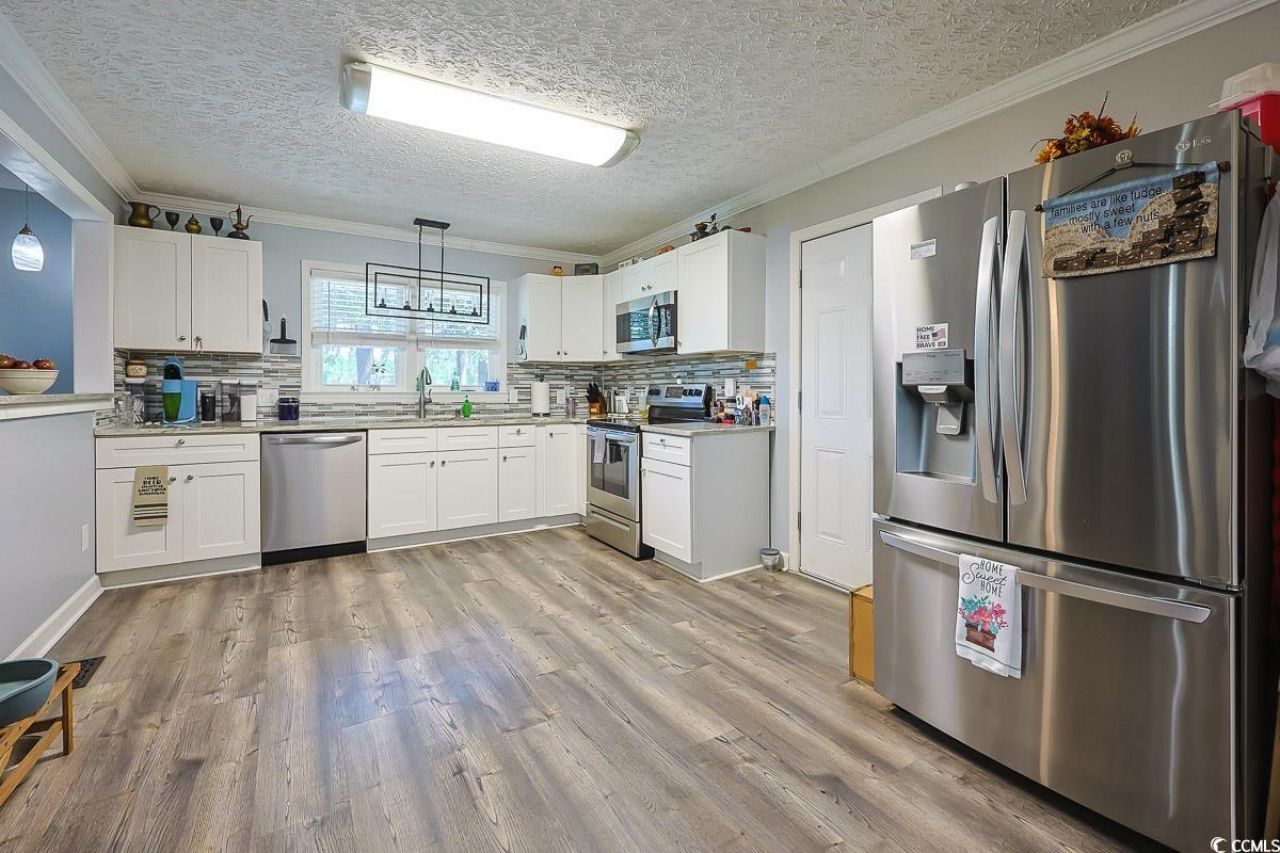 Welcome to 1704 Sherwood Dr, a completely renovated, updated 3 bedroom 2-full-bath home offering comfort, convenience, and plenty of potential! This home shows beautifully from the crown molding to the gorgeous LVP flooring throughout and tiled backsplash in between; nothing has been overlooked. Nestled in a desirable neighborhood this property features great curb appeal and a layout designed for easy living. Inside, youll find a spacious living area filled with natural light, a well-appointed kitchen with ample cabinetry, and comfortable bedrooms that provide the perfect retreat for family or guests. The primary suite includes its own private bathroom, while additional bedrooms offer flexibility for a home office, hobby room, or guest space. Outside, enjoy a large yard with room for outdoor entertaining, gardening, or simply relaxing under the Carolina sunshine. Whether youre hosting a cookout, creating a play space, or planning your dream outdoor oasis, this property provides the space to make it your own. Home is also wired to be powered off a generator if the need ever arises. Backing to the new Conway greenspace watershed adds a nice private buffer to the back yard. Conveniently located near shopping, dining, schools, and just a short drive to the beaches, 1704 Sherwood Dr puts you close to everything while still offering a peaceful residential setting. Dont miss the chance to make this lovely home yoursschedule a showing today!