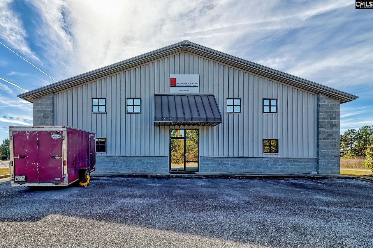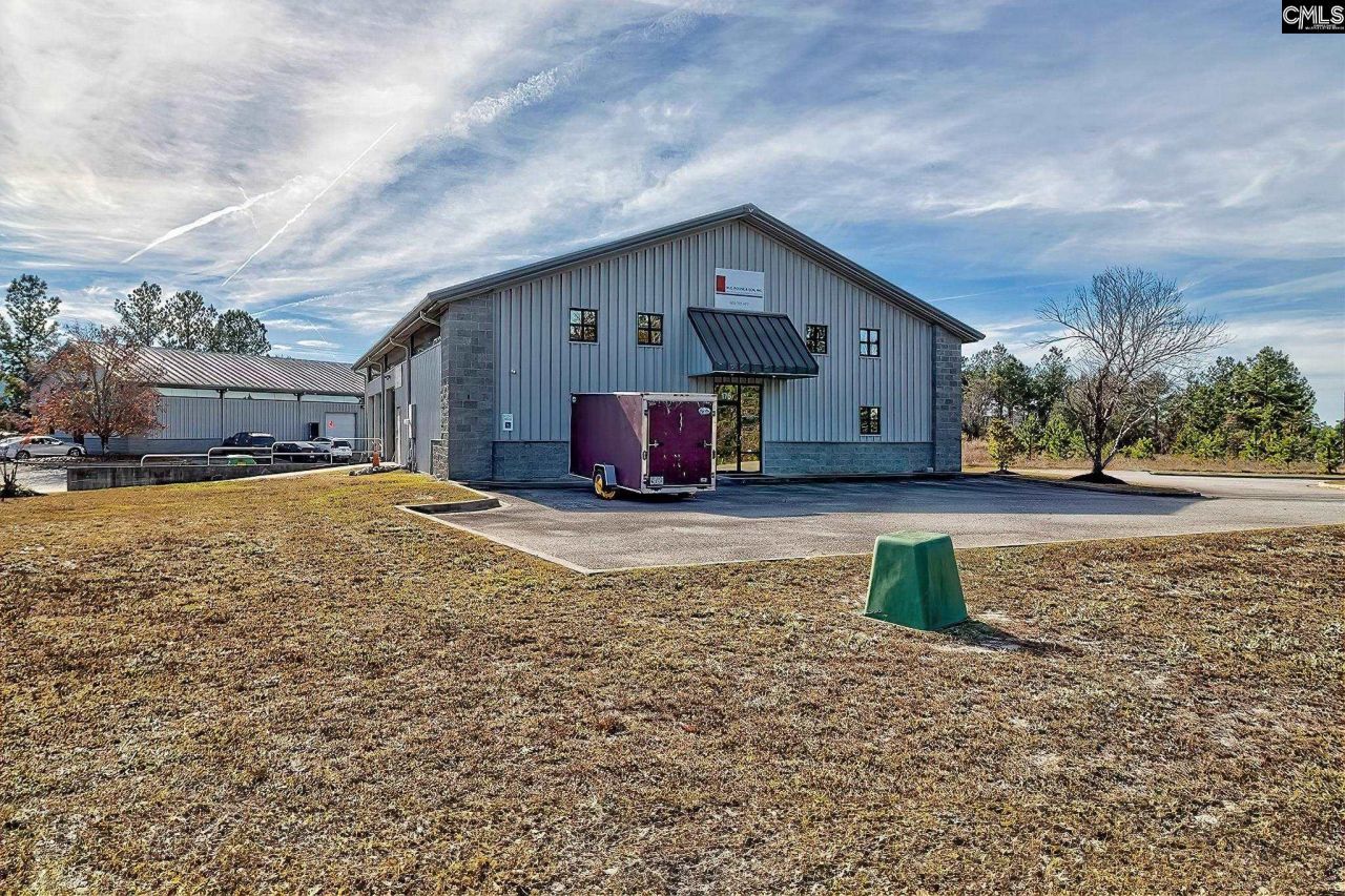 175 Foster Brothers Drive is located in the Lexington Industrial Park .07 miles from the intersection of I-26 and I-77 and 3 miles from the Columbia Metropolitan Airport. The 60x80 warehouse offers 4,800 sqft on the main level and 640 sqft on the 2nd floor for a total of 5,440 sqft. The sale includes the neighboring attached lot for a combined total of 1.09 acres. The warehouse features two truck bays with a ramp and a forklift-accessible bay door. Power includes 3-phase, 600-amp service, and high-speed internet is in place. Built for durability, the structure is engineered to withstand 120 mph winds and includes geothermal well-water-cooled AC with extensive insulation throughout. Cooling efficiency is exceptionally high due to previous use housing sensitive laser equipment. The roof is a single-piece, mechanically sealed standing seam metal system. Drainage for both the warehouse and the neighboring lot is grandfathered in per the deed, so no additional drainage improvements are required for future development. A small annual park fee of about $50 covers the surrounding street lighting. The main level includes a reception area, separate men's and women's restrooms, and a break room with a kitchenette. The upper level offers two private offices, a meeting area overlooking the warehouse floor, and a bathroom. Neighboring businesses in the industrial park include the Home Depot distribution center, TreeHouse Foods, Republic National Distributing Company & more. Disclaimer: C