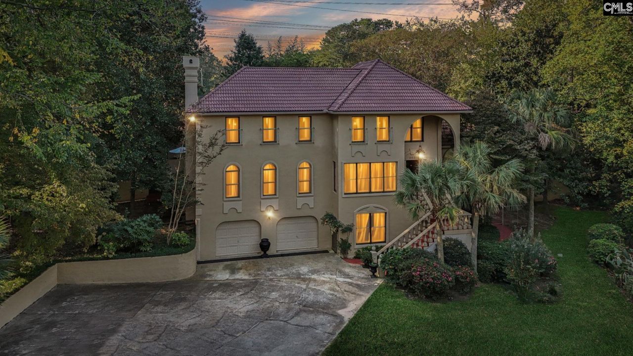 Discover a truly one-of-a-kind steel and concrete estate offering nearly 5,700 square feet of living space designed as a private compound with exceptional durability, privacy, and flexibility. Styled with European and baroque-inspired artistic detail, this property blends architectural strength with dramatic design.The main residence features expansive entertaining spaces including a phenomenal great room, elegant dining room, sunroom, and sunken formal living room, all accented with unique artistic finishes. The kitchen showcases granite countertops embedded with gemstones, creating a striking focal point. A full in-law suite on the lower level includes a kitchen, bedroom, and bath, ideal for extended family or guests. The second level features additional bedrooms, including a Moroccan-inspired bath that must be seen to be appreciated.A separate rear building offers an additional apartment-style living suite, providing excellent multigenerational or guest accommodations. A dedicated home theater with professional-grade equipment delivers a true cinematic experience.Outdoors, the property is designed as a private resort with concrete privacy walls, connected walkways, covered entertaining areas, a fountain, pool, playground, and landscaped grounds. Infrastructure highlights include two sprinkler systems, city water plus a private well producing approximately 220 gallons per minute, and a 900 sq ft detached garage/workshop ideal for car collectors, hobbyists, or creative use.Engineered for low-maintenance living with a durable roof system and energy-efficient concrete and steel construction, this estate offers both privacy and convenience just minutes from Lexington Medical Center, USC, and downtown Columbia. Select furnishings available for purchase. Also well-suited as an in-town corporate retreat or executive guest compound. Offered at $799,990 (approximately $141 per square foot)-exceptional value for a property of this caliber and construction. Disclaimer: CMLS has not reviewed and, therefore, does not endorse vendors who may appear in listings.