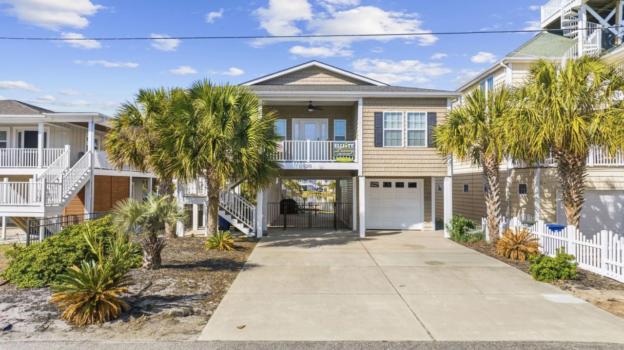 Outstanding traditional raised beach home just half a block to the oceanfront. Located in the Cherry Grove Beach section of North Myrtle, Once Upon a Tide has been well cared and is in excellent condition. Built in 2012, offering a classic 4 bedroom, 3 bath floor plan perfect for family gatherings or as a vacation rental investment. Inside youll find a spacious feel with taller ceiling heights, tons of custom trim work and new wide plank LVP flooring throughout. A primary en suite has a tiled shower, glass enclosure and double vanity. Two guest bedrooms are on the other side of the home with a large jack and jill bath in between. A fourth bedroom is convenient for kids with a set of bunks and is serviced by a hall bath. An open combined kitchen, dining and living space allows for large groups to spend time together. The kitchen is bright white with granite counter tops, stainless appliances and an inviting breakfast bar. For added convenience, a laundry closet is adjacent to the kitchen with stackable front load washer and dryer. Other features include large closet and storage spaces, ceiling fans, recessed lighting and upgraded plumbing fixtures. The home comes fully furnished and is a turnkey beach getaway. All appliances, furnishings and electronics are included with some minor exceptions. Enjoy the ocean breeze from the spacious front porch or take in the water views from the back deck. On the ground floor theres tons of storage space for your beach equipment in the garage. A half bath can be found inside the garage and an outdoor shower is available. The yard is fully fenced and the breezeway under the home is expansive with ample space for outdoor living. The backyard offers space for a future pool as well. Low maintenance exterior in beautiful neutral vinyl shake siding. Deck railings are white vinyl for increased durability and easy cleaning. Dont miss this fantastic updated home in a prime location. Schedule your showing today! All information is deemed reliable, buyer is responsible for all verification.