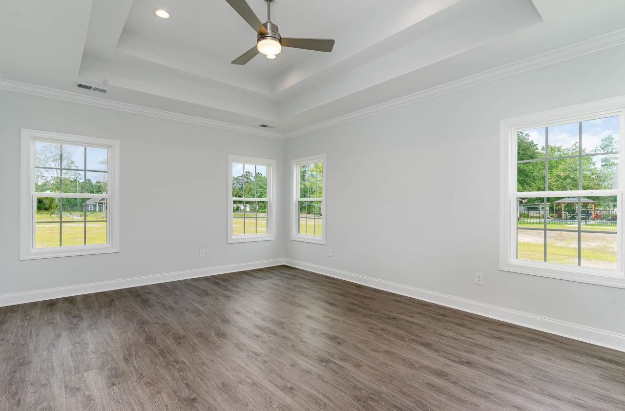 The Madison Plan | New construction with thoughtful design, quality finishes, and a layout that just makes sense for everyday living. This Madison plan offers a comfortable blend of open space, functional details, and the right touch of character. The main living area is designed to feel open without losing that cozy factor, featuring a fireplace with ledgestone and a wood mantel, plus crown molding that carries through key spaces like the great room, kitchen, and primary bedroom. In the kitchen, youll find raised-panel maple cabinets in Gramercy White, a farmhouse sink, stainless steel appliances, under-cabinet lighting, and even a pot filler above the stove. A small detail that makes a big difference day to day. The primary suite is set up to feel like a true retreat, complete with crown molding and a tiled shower featuring dual shower heads (standard and handheld) and a stone-accented floor. Additional bathrooms include a tiled tub surround for guests and a full bath in the bonus space, giving flexibility for visitors, hobbies, or multi-use living. LVP flooring runs throughout the home, keeping things low-maintenance and cohesive, while finishes like brushed nickel hardware, Roman arch interior doors, and clean trim work pull everything together. Step outside and youll find a screened porch and concrete patio, perfect for enjoying Carolina evenings, along with a welcoming front porch finished with beadboard ceiling detail. The exterior features LP Smart Siding in Midnight Shadow, Pennsylvania ledgestone accents, and architectural shingles, giving the home a clean, classic look. Behind the scenes, the home is built with solid systems including a 3.5-ton HVAC, 200-amp electrical service, and fiber-reinforced concrete foundation. If youve been looking for a home that offers modern finishes, practical features, and a layout that works for both everyday life and hostingthis one is easy to picture settling into. **Photos are of previously built and sold home. Features and selections may vary**
