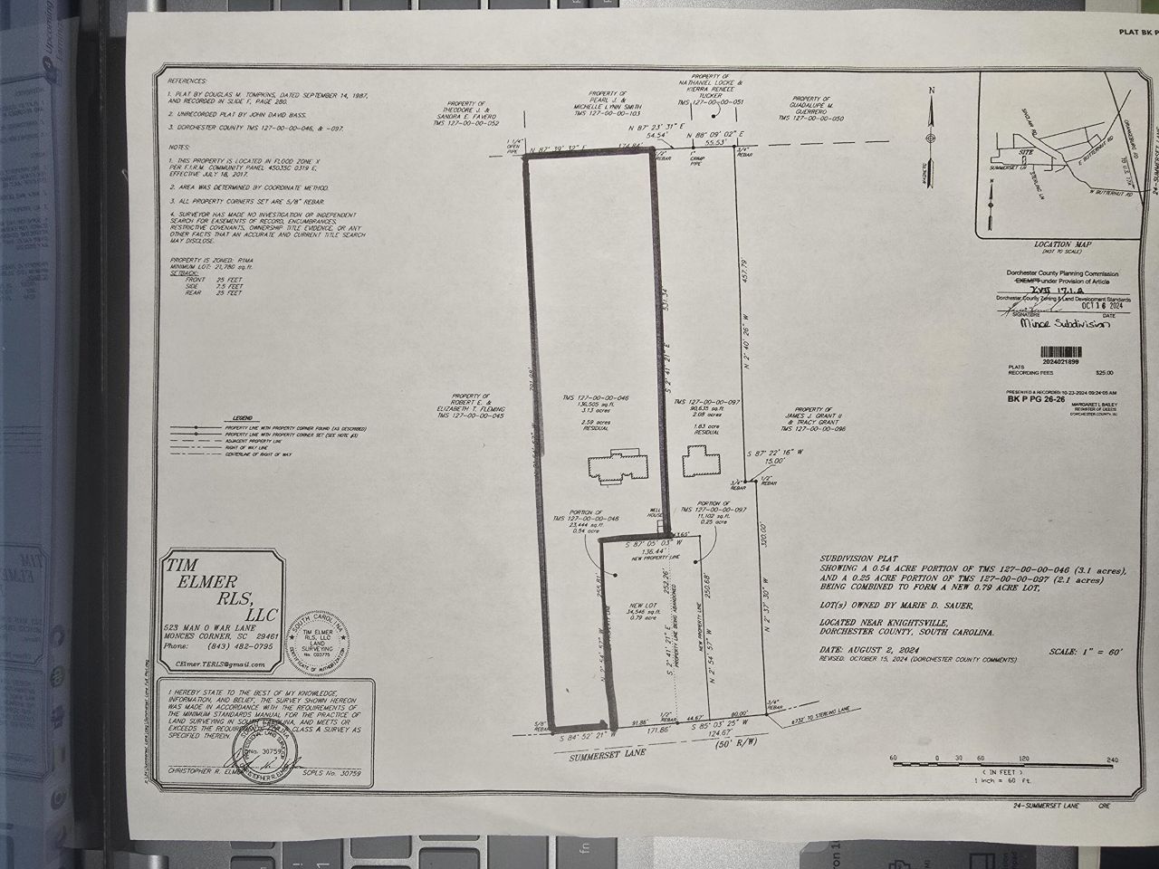 This home is on 2.59 Acres of high land with the ability to build another home on the property (Accessory Dwelling Unit) and the house next to this is also for sale with 1.83 additional acres (298 Summerset). This property is just 15 minutes to downtown historic Summerville and also the I-26 at Jedberg Road. The home sits back off of the paved Road and you will feel like you are in a park-like setting This home has been updated and upgraded in every way and includes a brick wood burning fire place and even a whole house Generac generator The square footage includes a portion of the garage area that can be converted to finished heat and air interior square footage. Public sewer is avail + public water is close by.Separate driveway can be added to the left side of the lot. Plat is under documents