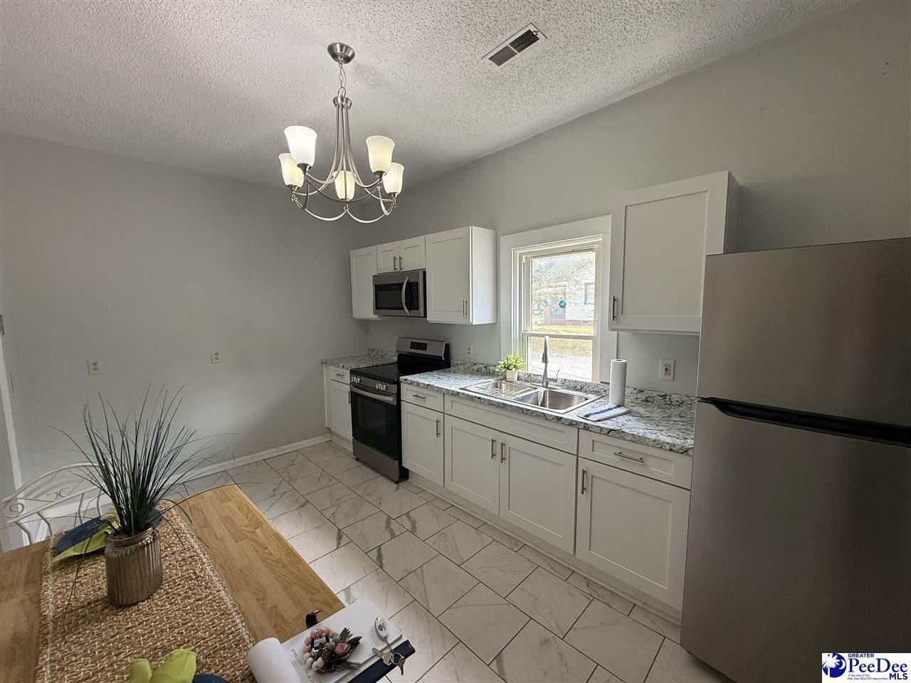 Charming, fully renovated 1950s bungalow located within the town limits of Cheraw, South Carolina. This beautifully updated two-bedroom, one-bath home blends classic character with modern convenience. Step inside to find a bright, inviting interior featuring updated flooring, fresh paint, and a thoughtfully redesigned layout. The kitchen has been completely renovated with modern finishes, offering both style and functionality. The spacious living area provides a warm and welcoming atmosphere, while both bedrooms offer comfortable living with ample natural light. The updated bathroom features contemporary fixtures and a clean, timeless design. Situated on a manageable lot within town limits, this home offers convenient access to local shops, dining, and historic downtown Cheraw. Perfect for first-time buyers, downsizers, or anyone seeking move-in-ready comfort with classic charm.