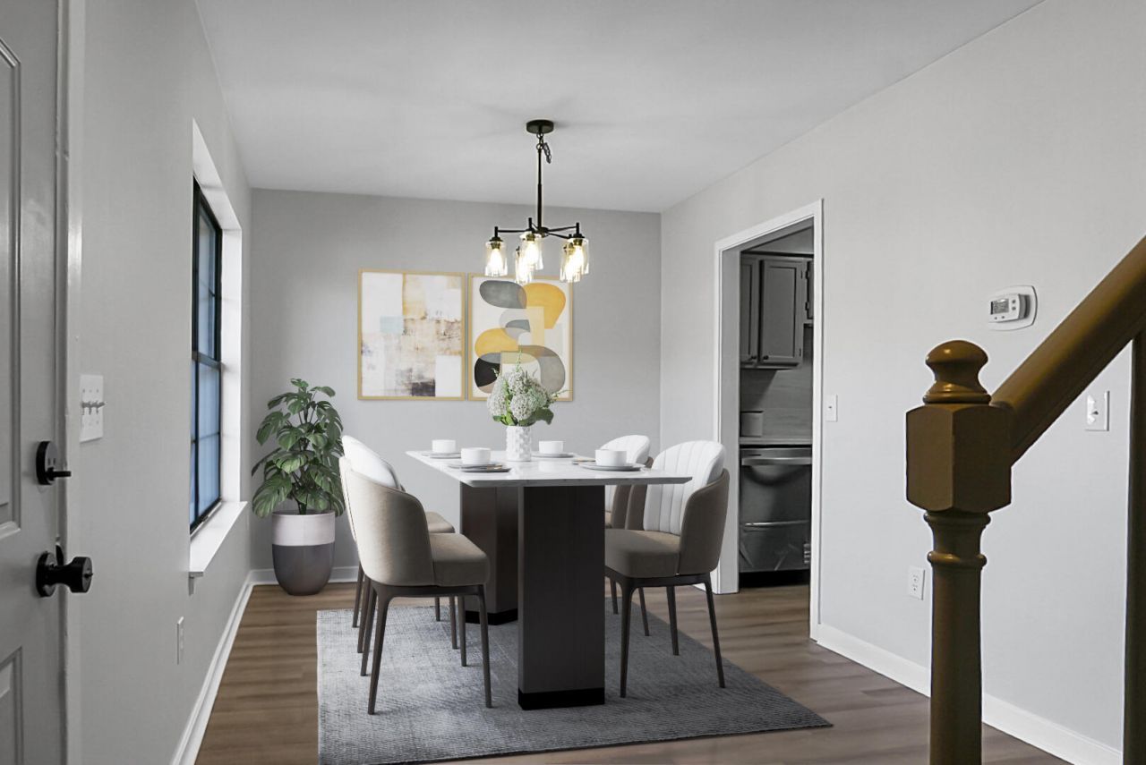 Welcome to 4191 Highgate Court, a beautifully reimagined 2-bedroom, 1.5-bath townhome located in the established Collins Park Villas community. Carefully transformed with upscale finishes and modern conveniences, this residence offers a graceful blend of contemporary style, thoughtful design, and everyday comfort, creating a space that feels both refined and welcoming. The main level is designed for ease and functionality, with all living spaces thoughtfully arranged downstairs. Upon entry, the dining area creates an inviting first impression, while the den and kitchen are positioned toward the rear of the home, allowing for a natural and comfortable flow. The kitchen features quartz countertops, modern cabinetry, stainless steel appliances, upgraded hardware, and a timeless tilebacksplash. Just off the kitchen, a dedicated laundry and utility area provides added convenience, along with a tastefully updated half bathroom. From the den, step outside to a private covered patio with a ceiling fan, offering a relaxing outdoor retreat. The newly fenced backyard adds privacy and space for enjoyment. Upstairs, both bedrooms continue the elevated aesthetic with new flooring and carefully curated lighting that enhance the calm, comfortable atmosphere. The full bathroom features a clean, modern design and includes a bathtub, a contemporary vanity, and a coordinating mirror. The primary bedroom is enhanced by a stylish barn door, adding character and architectural charm. Extensive upgrades include new windows, HVAC system, roof, plumbing, electrical, lighting, outlets, doors, hardware, and refreshed landscaping. Conveniently located near Charleston International Airport, shopping, dining, and everyday conveniences, with a neighborhood basketball court and playground just steps away. No HOA. Schedule your private showing today.