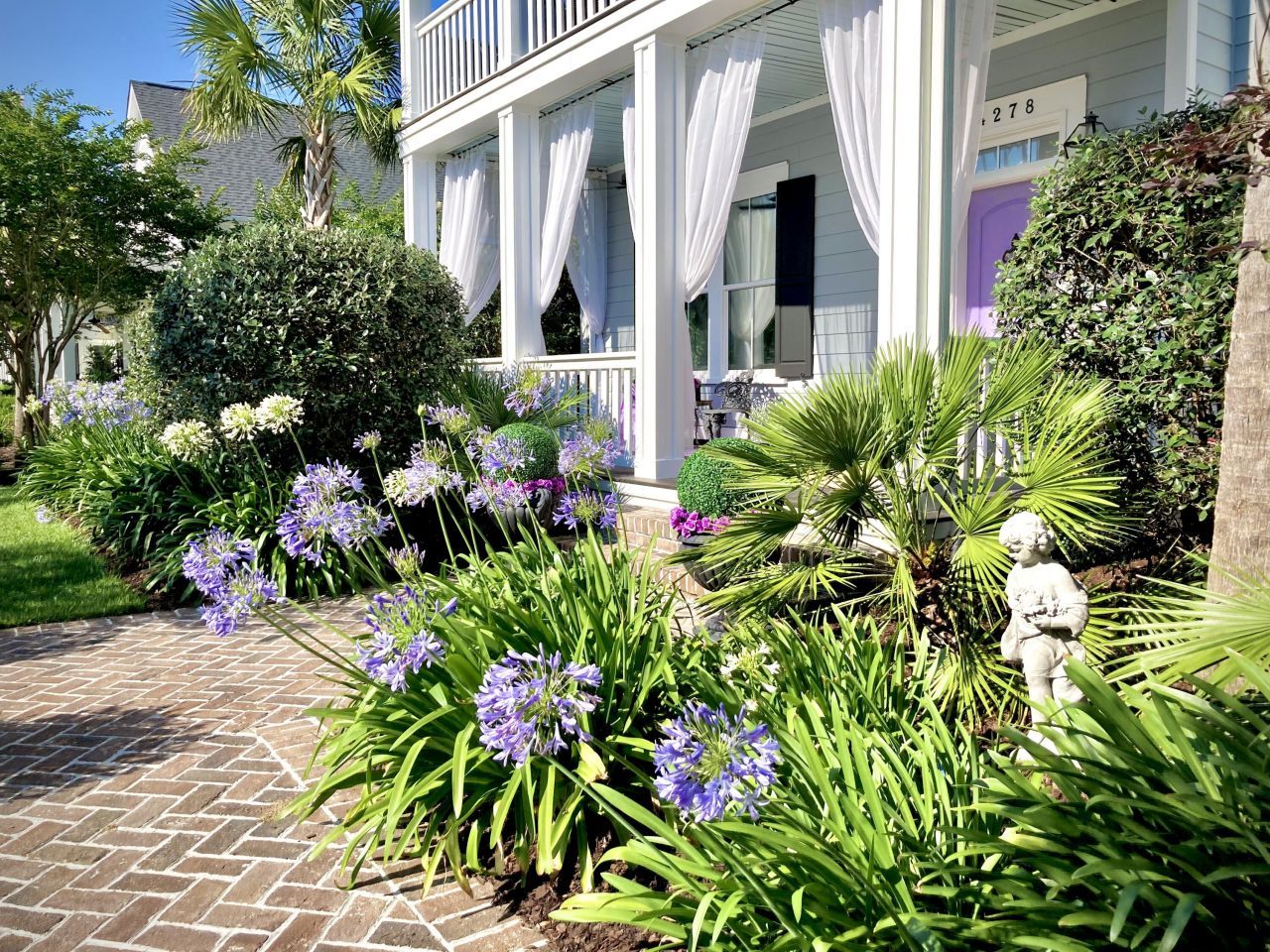Step into the timeless charm of this exquisitely designed front courtyard, reminiscent of downtown Charleston's historic elegance. Unique in the neighborhood, twin herringbone brick pathways converge, creating a grand entrance enclosed by formal flower beds. The front courtyard features violet and silver toned foliage, expertly appointed to perfectly complement the home's exterior and soft violet front door. Four mature and evergreen European olive trees provide graceful beauty year-round. The updated front door flanked by gas lanterns features antique style hardware and an authentic 18th century door knocker imported from France. Once inside, you are greeted by an impressive two-story foyer. This customized home includes premium builder options including a gas fireplace mantle with granite stone hearth, a premium chef's kitchen, metal stair railings, recessed lighting and double sinks in both full bathrooms plus granite countertops. The kitchen was outfitted with all the premium options including quartz countertops, glass inset door cabinetry with premium crown molding, chef's hat over range and antique style hardware. Additionally, there is plenty of pull-out shelving, a Vauth Sagel German engineered double shelf corner carousel and a custom spice rack in the pantry. All flush-mount, pendant, vanity and chandelier lighting fixtures have been upgraded throughout the entire home, including the closets. The second-story flooring was also upgraded to match the first floor. A spacious bonus room could be a workout space or media room, or can easily be converted into a fourth bedroom. The renovated laundry room features custom cabinetry, a birch wood countertop and ceramic Arabesque tile backsplash. The backyard is an entertainer's dream, featuring a two-tier fountain centered on an expansive herringbone brick patio. Premium bluestone walkways lead to the screened-in porch and the side door of the garage. A herringbone brick pad at the back of the home offers the perfect grill spot, with a nearby natural gas bib for convenience. Designed with privacy in mind, the property is lined on both sides by mature, 10-foot privacy hedges. The professionally leveled back lawn is lined with a dramatic and ever flowering row of pink sweet drift roses. The rear portion of the lawn includes a Carolina Brick topped retaining wall that sets the stage for what lies beyond. Step down either of the two sets of brick stairs and you are immediately transported from the formal landscaped garden into a peaceful and fern filled private woodland wonderland. On the southern side of this wetland forest, lies a centuries old great oak tree, as well as numerous Coral Bark and Red Emperor Japanese Maple trees. Poplar Grove is a thoughtfully designed master-planned community that blends natural beauty with exceptional amenities. The community features a saltwater swimming pool, a cutting-edge fitness center, and a marshfront observation deck. Poplar Grove has miles of direct access to Rantowles Creek, where fishing, paddleboarding, and boating are right at your doorstep. The community also features a charming Boathouse, a premier equestrian facility, miles of trails, and secure boat storage perfect for those seeking an active, outdoor lifestyle.