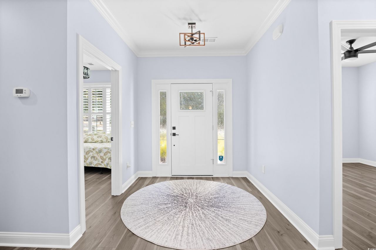 Almost new home in Little River, on a large lot with wooded left and back property lines, is ready for a new owner. Walk into an open foyer leading to the living/dining/kitchen area. Check out the crown molding, and LVP flooring throughout the home seamless and beautiful! Kitchen features a 42 cabinets with light rail, farm sink, quartz counters, tile backsplash, breakfast counter, LP Gas top range with electric oven, and is loaded with drawers and cabinets for your storage needs and a pantry too. The dining area is open and overlooks the living room with a gas fireplace, decorative cabinets and 2 window seats. Beautiful covered porch with wood slat wall is accessed thru a special sitting area off living room. This space can be used as an office, playroom, or any space you desire. Porch has an extended deck for grilling, and an area of the yard is fenced. Beyond this area there is a covered parking area for your boat, RV, or other. A mud room with drop zone and storage are off the oversized 2 car garage. Back at the front of the home you will find two bedrooms, a full bath and laundry room with sink, linen, cabinets, and washer and dryer are included with the sale. And the Master Bedroom with 2 closets, a shower with handheld and 2 body sprays, a full soaking tub, 2 sinks and vanity along with a water closet complete the living areas. Home is adorned with special features like sea glass panels in front door, 36 shaker style doors, plantation shutters across the front of the home, recessed lighting and more. Partially fenced yard, and a large storage shelter is in the back yard. Great for your boat and more. This home is a special find in Little River near the waterway and close to shopping, dining, and entertainment for your enjoyment. Property is located in Flood Zone X, see attached photo from FEMA map. Make your appointment to tour today!