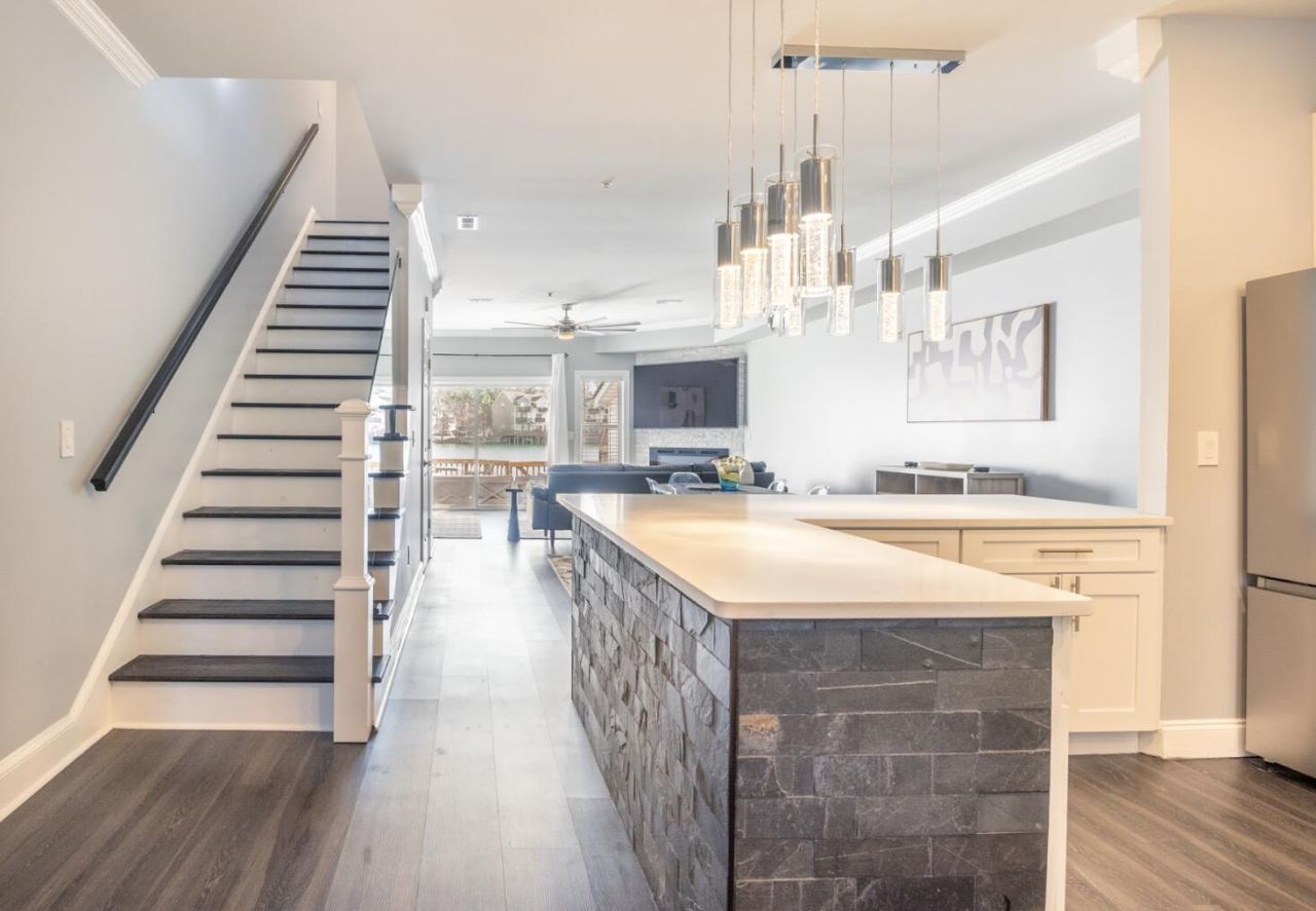 Welcome to 4741 Arco Lane your Fully Renovated, *waterfront* townhome. This is your chance to own THE most extensively upgraded townhome inside the entire neighborhood - and at by far the best Value available in the neighborhood! No Expense has been spared, and the condition has been maintained impressively well - bring your inspector and see what we mean! Can be sold furnished as well (ask agent for details). Not to oversell it, but seeing is believing, so definitely request a showing: Located in Lake Palmetto subdivision, which is possibly North Charleston's best kept secret neighborhood, this home truly has it all. Spanning 2,142 square feet across three levels, this 3-bedroom, 3.5-bath home has been maintained impressively well - bring your inspector and see what we mean! Can be sold furnished (ask agent for details) - talk about a turn-key home! not to oversell it, but seeing is believing, so definitely request a showing: Located in Lake Palmetto subdivision, which is possibly North Charleston's best kept secret neighborhood, this home truly has it all. Spanning 2,142 square feet across three levels, this 3-bedroom, 3.5-bath home has been completely reimagined from top to bottom with clean, modern design choices and a cohesive, high-end luxurious feel throughout (and New Roof 2025)! From the moment you walk in, you're greeted by wide-plank LVP flooring, tall ceilings, and a remodeled open-concept layout that maximizes both space and natural light.The main living level is built for entertaining, anchored by a striking kitchen, featuring sleek white cabinetry, upgraded quartz countertops, stainless steel appliances and chefs hood, pendant lighting, and a custom tile backsplash -- all centered around a large island that flows seamlessly into the dining and living areas. An electric fireplace with stylish stone surround adds warmth and character, while the entire space opens effortlessly toward the water, creating a true indoor-outdoor connection. Step outside to your brand-new back deck (2026) overlooking the lake (stocked with fish) -- the perfect setting to relax, host, or simply take in the peaceful water views and the signature fountain feature at the center of Lake Palmetto. (An exterior private storage closet can also be accessed from the deck.)The home's three-story layout offers exceptional flexibility, with each level designed to function as its own private retreat. The second floor features two spacious bedrooms, one with its own ensuite bath, and the other with access to another full bathroom in the hallway (next to the laundry closet), while the top level provides a versatile third suite ideal for a primary retreat, guest quarters, home office, or media room -- a layout that's both functional and highly desirable. Each bathroom was renovated with different materials and each finished in their own unique style (and all bathrooms come with heated toilet seats) - again, these show even better in person.This property has also proven itself as a successful short-term rental with professional management, making it a true turnkey opportunity for investors as well. To simplify things even further, the home can be sold fully furnished, allowing for immediate use as an income-producing property or a seamless move-in experience.Lake Palmetto is one of North Charleston's best-kept secrets as it's a quiet, waterfront community centered around a scenic lake, yet incredibly convenient to everything! You'll enjoy *2 Private Parking spaces* and you're just a short walk from entertainment at the Charleston Coliseum & Performing Arts Center, Tanger Outlets for shopping, or a short drive from the rapidly growing Park Circle district, with quick access to I-26, I-526, Charleston International Airport, Boeing, and Joint Base Charleston. Enjoy nearby outdoor spaces like Riverfront Park, plus easy drives to everything Downtown Charleston and the surrounding area beaches have to offer. Whether you're looking for a primary residence, seco