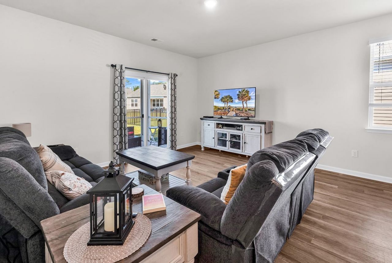 Welcome to this stunning 5-bedroom,3-bath single-family home in the sought-after community of The Vistas at Sun Colony. This beautiful home was built in 2024 and perfectly situated on a serene pond. The spacious floor plan features a convenient guest bedroom and a full bath on the first floor, ideal for visitors or multi-generational living. Enjoy beautiful flooring throughout, cozy carpet in the bedrooms, and a bright open layout that is perfect for everyday living and entertaining. Upstairs. youll find a thoughtfully placed laundry room and four additional bedrooms, including a generous owners suite. Step outside to your screened-in back porch and take in peaceful water views on your spacious lot-with plenty of space to relax or play. Located just minutes from Hwy 31, this home offers quick access to Little River, North Myrtle Beach, shopping, dining, golf, and entertainment. Move-in ready and waiting for its new owners- schedule your tour today!