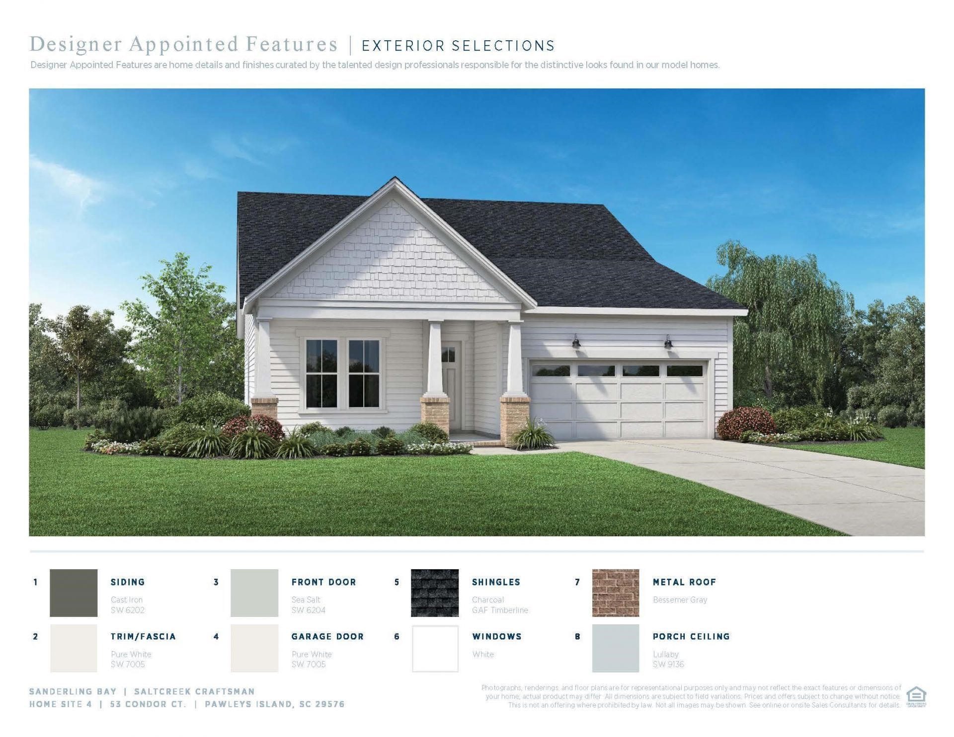 Welcome to the Saltcreek Craftsman under construction in Sanderling Bay. This thoughtfully designed home blends coastal charm with modern livability, featuring open-concept living spaces and elevated architectural details throughout slated to be completed just in time for the Fall season. Highlights include a spacious expanded covered patio accessed through impressive multi-slide stacking doors, creating seamless indoor-outdoor living ideal for entertaining or relaxing. Inside, the home showcases ceiling detail in both the great room and primary bedroom, adding character and visual interest, while clerestory windows in the casual dining area invite abundant natural light and enhance the airy coastal feel. Practical luxury continues in the utility room with cabinetry and sink, offering added functionality and organization for everyday living. Best of all, this stunning home comes complete with thoughtfully selected designer finishes and generous builder incentives that offer significant added savings. *Images shown are of a similar completed home and may reflect options not included in the home price.