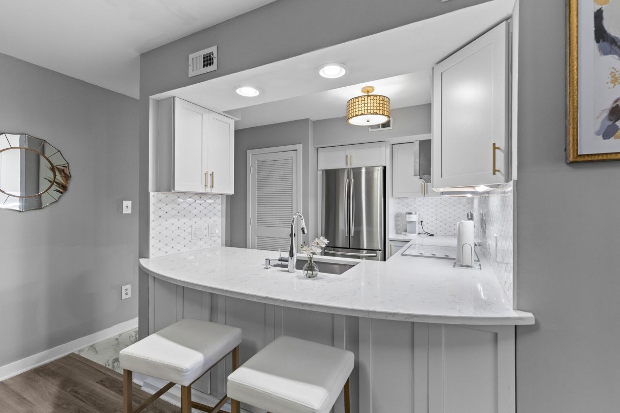 Discover refined Lowcountry living in this elegant first-floor condo steps from Colonial Lake and the Battery. Privately accessed from the tree-lined street, this charming residence blends historic Charleston character with modern luxury: open-concept living and dining with wide-plank LVP floors throughout, gourmet kitchen with quartz counters, tiled backsplash and professional stainless appliances, is perfect for entertaining. There is a spacious primary bedroom with a walk-in closet. The bathroom has a tiled shower and beautiful fixtures. Additional highlights: in-unit laundry, dedicated secure parking, and bike storage. This home is close to all of the great attractions that Charleston has to offer!