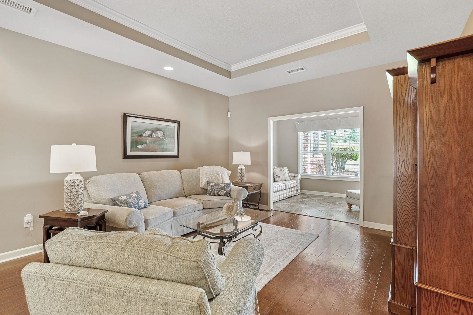 Presenting this vibrant 3 bedroom 2.5 bath townhouse located in the popular Villas at Long Bay complex. This townhouse features hardwood & tile flooring, recessed lighting, a guest powder room, negotiable furniture, and a classic living/dining room combo that showcases access to the delightful Carolina room with tranquil hole #4 fairway views with an entryway to the relaxing back patio. The cheerful kitchen is equipped with a stainless steel appliance package, a breakfast bar, cabinets topped with crown moulding, and a family friendly breakfast nook. The main level primary suite offers an elegant arched entryway, a singe step tray ceiling with a fan, a peaceful retreat area with golf views, a walk-in closet, private access to the primary bath that includes a dual sink vanity, a water closet, a garden tub, and a deluxe step-in shower. As you continue upstairs you will find a practical office, two additional bedrooms, and a full guest bath. This memorable townhome is completed on the main level with a ideal laundry closet, an extra storage closet, and a single car attached garage. This townhome affords you easy access to the beach and golfing along with all of the other activities and happenings in North Myrtle Beach & Myrtle Beach including fun eateries, award winning off-Broadway shows, public fishing piers, and intriguing shopping adventures along the Grand Strand. Conveniently located to your everyday needs, including grocery stores, banks, post offices, medical centers, doctors offices, and pharmacies. Check out our state of the art 3-D Virtual Tour. Floor plans are generated from a virtual tour camera and are for estimate purposes only. Square footage is approximate and not guaranteed. Buyer responsible for verification of all information.