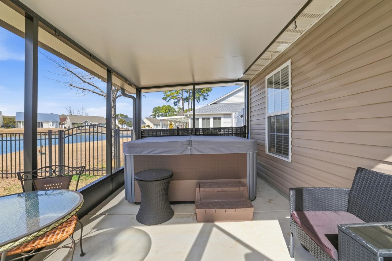 Welcome to 815 Sultana Dr in Hidden Lakes Village, a beautifully maintained 3-bedroom, 2-bath lakeside home that is truly MOVE IN READY! From the moment you arrive, youll notice the immaculate condition and pride of ownership throughout. Step inside to vaulted ceilings and an abundance of natural light that create a bright, open, and inviting atmosphere. The spacious living areas flow effortlessly, making the home perfect for both everyday living and entertaining. Enjoy relaxing mornings or peaceful evenings on the recently added screened porch overlooking the fully fenced backyard ideal for pets, play, or simply enjoying the outdoors in privacy. The hot tub conveys with the property. The yard is beautifully landscaped to enhance the homes curb appeal and provide a serene setting year-round. Driveway pad has been enlarged for easier parking. For peace of mind, RipRap was recently installed on the lakeside of the property to reinforce the land on the water from eroding. Other updates include a new roof (2019) and HVAC system (2018) and new screened porch addition in 2025. Hidden Lakes Village offers wonderful community amenities including a scenic lakefront pool, playground, gazebo, and tennis and pickleball courts providing the perfect blend of recreation and relaxation right in your neighborhood. Located in Little River, just minutes from shopping, dining, golf, and the waterfront, this home combines comfort, style, and convenience. Dont miss the opportunity to make this exceptional home yours! All information is deemed to be correct - Buyer should verify all information as well.