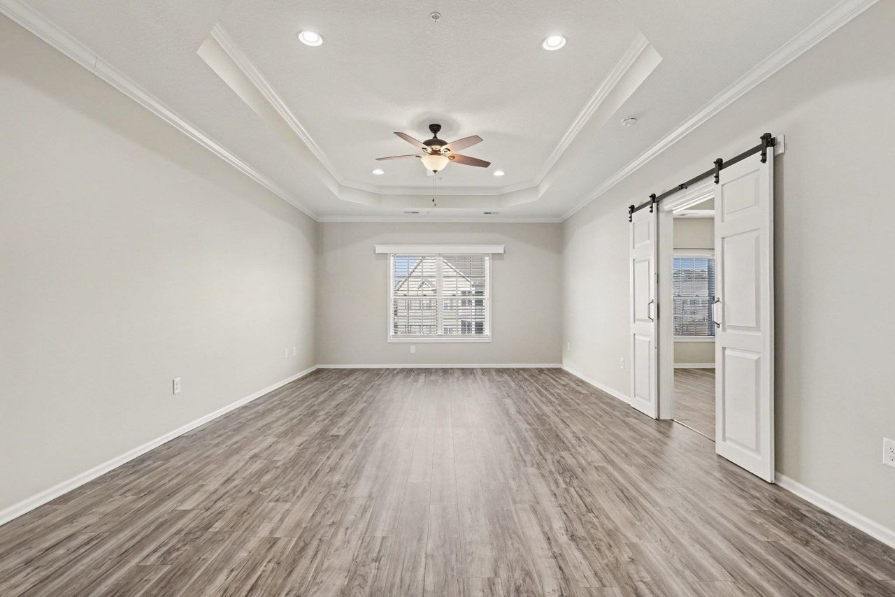 This second-floor, three-bedroom, two-bathroom condominium is beautifully updated and features luxury vinyl plank flooring throughout. The spacious living area offers tall ceilings and a tray ceiling, creating an open and inviting atmosphere. The kitchen is well appointed with granite countertops, stainless steel appliances including a gas range, 42-inch cabinetry, pantry storage, and a laundry room conveniently located just off the kitchen. The dining area is accented with classic wainscoting. The large primary bedroom includes a tray ceiling, barn door, walk-in closet, and an en-suite bathroom with a double vanity and a tub and shower combination. The condominium also features a heated and cooled 10-by-12-foot storage room/office that is located below the residence on the back side of the building. Cypress Grove offers a community pool and an ideal location near shopping, dining, golf, the Marsh Walk, state parks, and just minutes from the beach, making it a great place to enjoy the coastal lifestyle.
