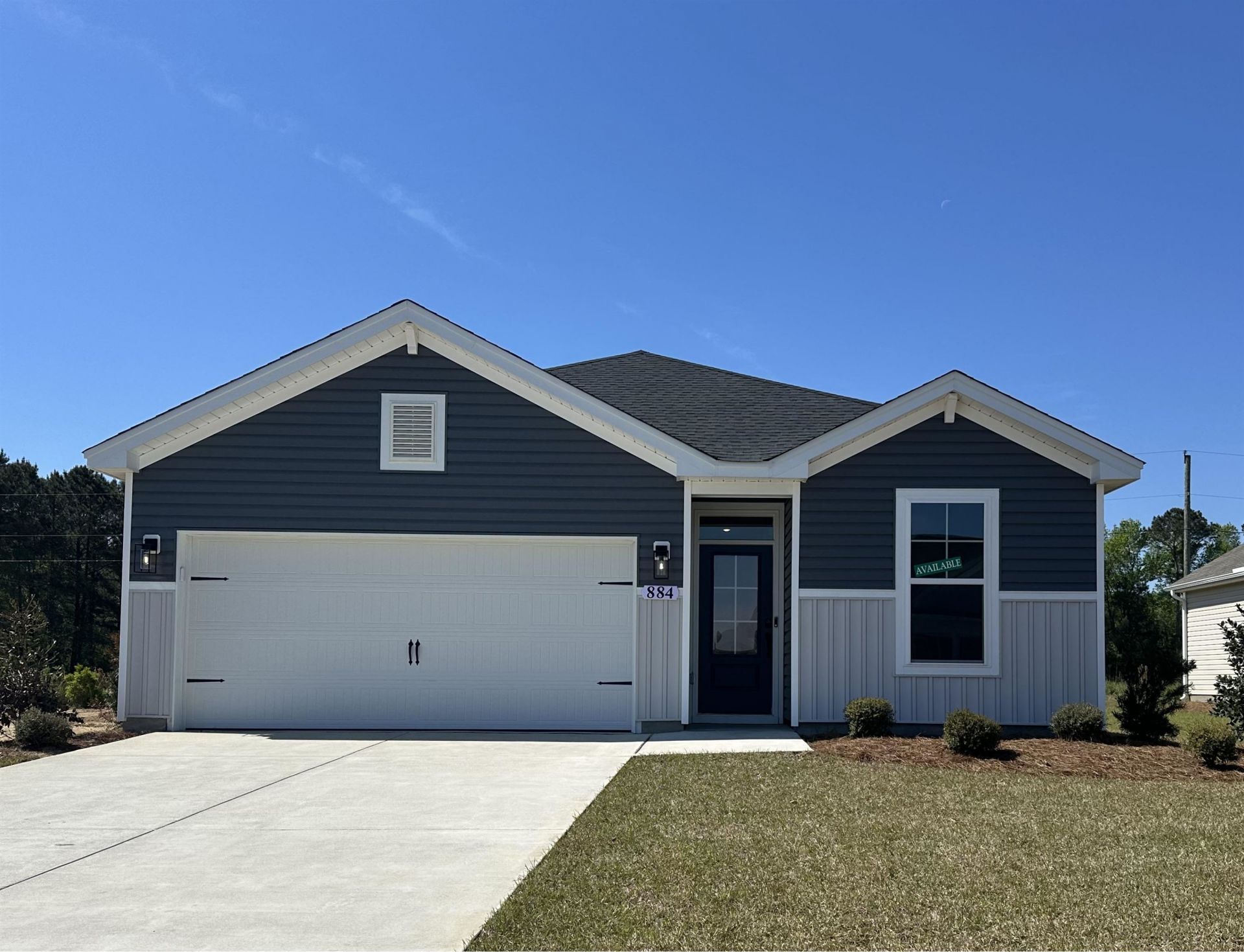 [] Oak Hollow is a Natural Gas Community situated 20 Min. to North Myrtle Beach. This Courtney II C, a 1 story home featuring 3 Bedrooms (and an office with French doors) , and 2 Bathrooms, a Foyer, Dining Area, and large Great Room. The owners suite has a double sink vanity, a walk-in closet, and an upgraded tiled shower. An Office with a closet. Upgraded grey cabinets and Quartz countertops in the Kitchen. Luxury Vinyl Tile flooring throughout the home, with carpet in the bedrooms. Covered rear porch. 2 Car Garage. Fully Sodded & Irrigated Lawns.