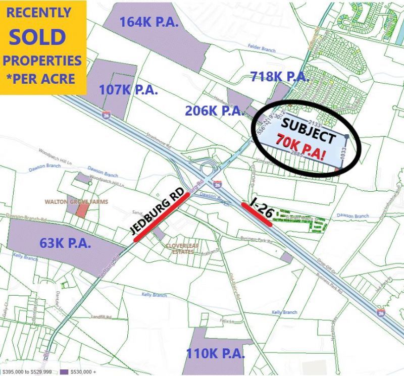 ****ATTENTION!! -- 64+/- ACRES! -- JEDBURG RD & I-26 CORRIDOR! **** OVER 1000 FT FRONTAGE!! **Berkeley County looking for Light Industrial!** PRICED BELOW ALL THE RECENT SURROUNDING PROPERTY SALES!!! (SEE PICTURES!!) -- THIS AREA IS EXPLODING WITH NEW DEVELOPMENT, AND THIS IS ONE OF THE LAST LARGE TRACTS AVAILABLE!! -- CURRENTLY ZONED FLEX-1 (BERKELEY COUNTY) *** CLOSE PROXIMITY TO: Shopping, restaurants, Cane Bay, New Roper Hospital, Carnes Crossroads, Nexton, Volvo, and 30 min. from Downtown Charleston! - **SURVEY AND WETLANDS STUDY available in DOCUMENTS! ***WATER & SEWER AVA! (FORCED MAIN WATER located directly across street & SEWER located immediately Adjacent NE property!) *(Home on property will be moved, prior to closing) ***** FULL WETLAND DELINEATION AVA UPON REQ. SEE LA.****PLEASE NOTE! -PAY SPECIAL ATTENTION to the WETLANDS STUDY (Full WD Ava upon Req. - too Large to fit in MLS) attached to the MLS. According to the WD, the property consists of approx 30+Acres of wetlands, most all of which are to the back and backsides of property. Buyer can mitigate as they deem fit, with approval by governing authorities. **Seller says the county will NOT allow Residential development, they want Industrial/commercial - ALL the information we have been able to obtain from the sellers, and any/all third-party organizations, including but not limited to city/county and other entities, has been posted to this MLS (under Documents). If you do not see the item in question, it is because we do NOT have them. -- Unless specifically noted, these items in question, will be the buyer's responsibility, either during the DD period or post-closing. Thank you.