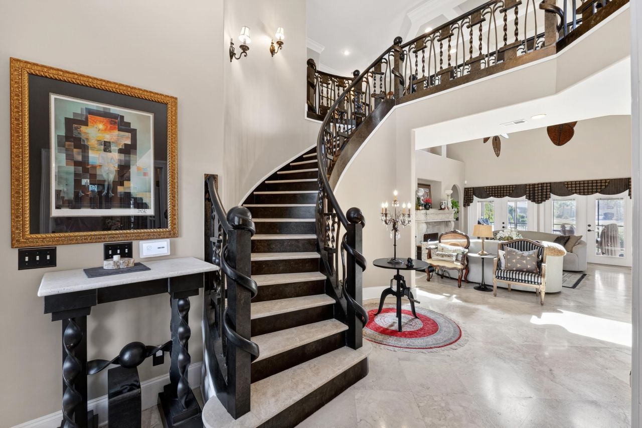 Beautiful 5BR Home located in the highly desirable gated community of Bluffs on the Waterway. This 5-bedroom, 3.5-bath home was extensively updated in 2023 and offers a spacious, functional layout with quality finishes throughout. The home features a custom metal and stone staircase in the foyer, coffered ceilings in the living and dining rooms, a stone fireplace in the main living area, and a double glass-pane fireplace in the master bedroom. The gourmet kitchen includes dual sinks, double ovens, granite countertops, new stainless steel appliances (dishwasher, refrigerator/freezer, garbage disposal and gas cooktop), and is open to the living space which is ideal for entertaining. The main-floor primary suite offers a large custom walk-in closet with built-ins, a center island, and a spa-style bath with a freestanding copper bathtub, copper fixtures, copper sinks/faucets, quartzite countertops, and custom tile details. Enjoy views of the pond and fountain from the screened-in porch. Additional features include a wine closet, ice maker, fully insulated interior walls, spacious laundry room with custom cabinetry and new washer/dryer on the exterior are two new tankless hot water heaters, and to top it off an oversized 2+ car garage with room for up to three vehicles. Upstairs includes four bedrooms, a Jack-and-Jill bath, an additional full bath, a large bonus room above the garage, and new carpet throughout the entire second floor. The upper-level walkway overlooks the living room and foyer below. Community amenities include a clubhouse, pool, tennis and pickleball courts, playground, private boat ramp, and boat storage on the Intracoastal Waterway. Conveniently located in the Carolina Forest school district with easy access to International Drive, Highway 31, and Myrtle Beach International Airport
