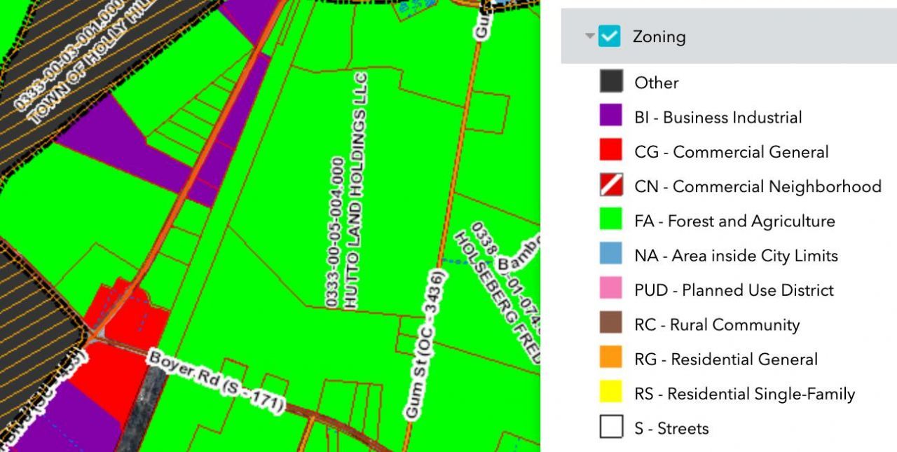 Excellent 87-acre industrial development site located just outside theHolly Hill city limits in Orangeburg County. Currently zoned FA with potentialrezoning to BI, the property offers over 1,600 feet of railroad frontageand direct access along Gum Street off Gardner Road. Heavy utilities arenearby, including large water lines along Boyer Road and Gardner Roadsupplying nearby cement plants, a 6-inch high-pressure gas line runningalong the rail, and fiber service in close proximity. Up to 100MW of powercan be brought to the site, making it ideal for large-scale manufacturing,logistics, or energy users. The land is mostly high and currently used asfarmland, offering excellent development conditions. Strategically locatedonly 5 minutes from I-26, 15 minutes from I-95, less than 5 minutesfrom Geocycle, and within 20 minutes of Volvo and Walmart's distributioncenter, this tract delivers a rare combination of rail access, infrastructurecapacity, and regional connectivity in one of the Lowcountry's mostpromising industrial corridors.